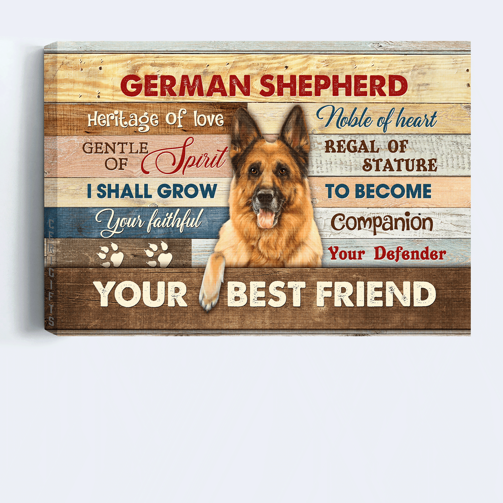 German Shepherd Landscape Canvas- German Shepherd dog, Colorful wooden background - Gift for German Shepherd - I shall grow your faithful - Landscape Canvas Prints, Wall Art suits any room in your house from the kitchen, bedroom, bathroom to the living room.