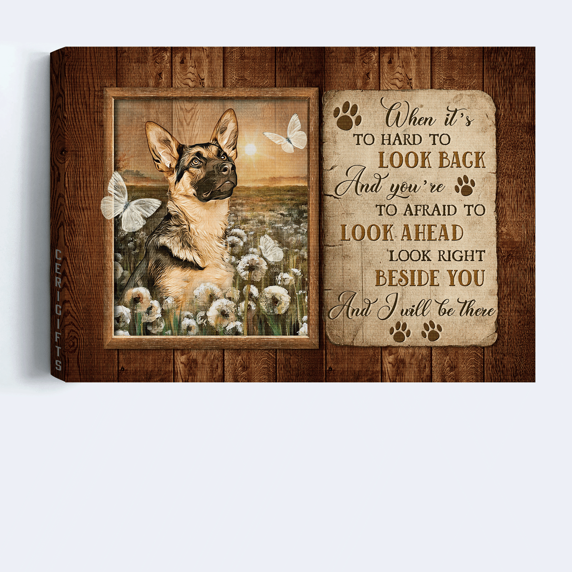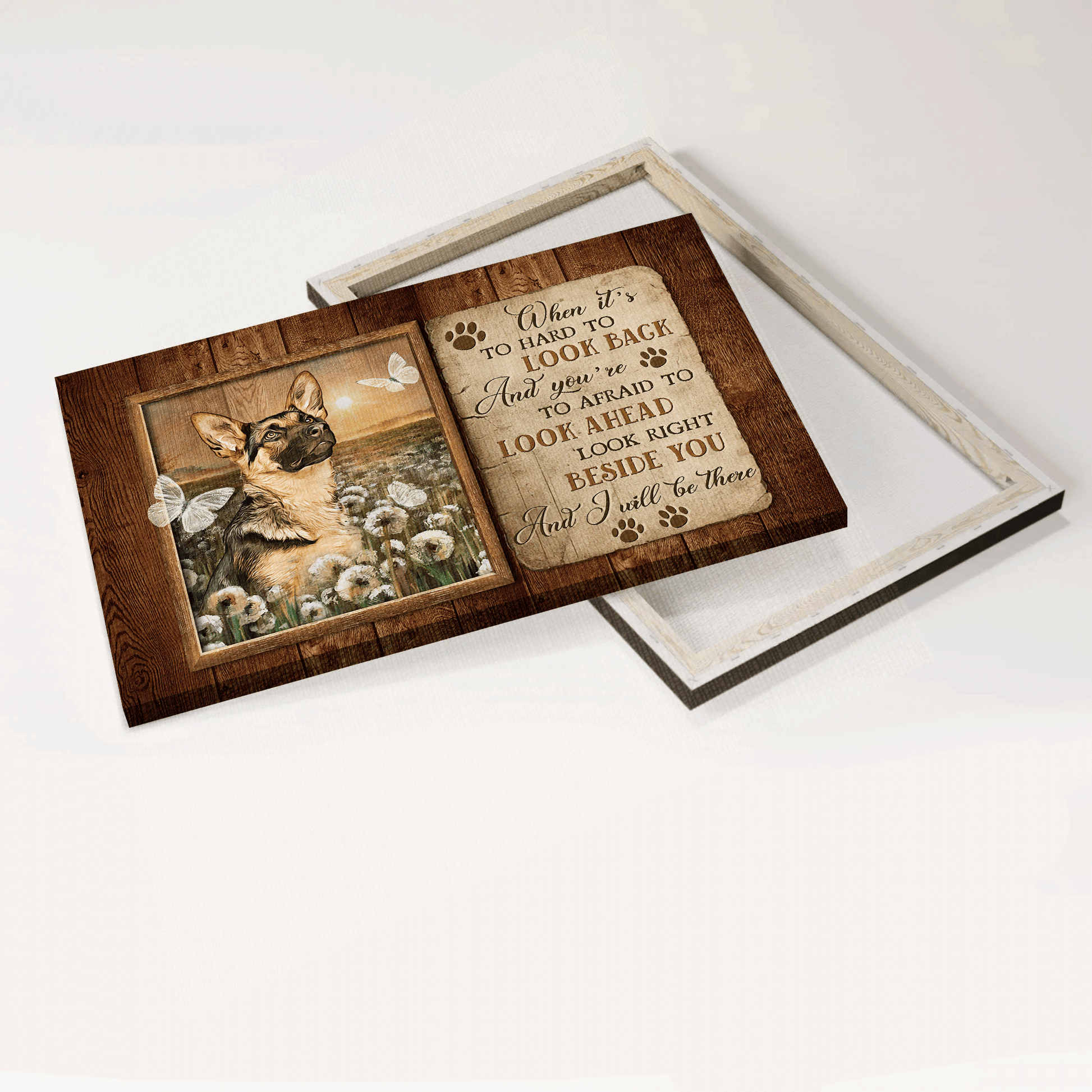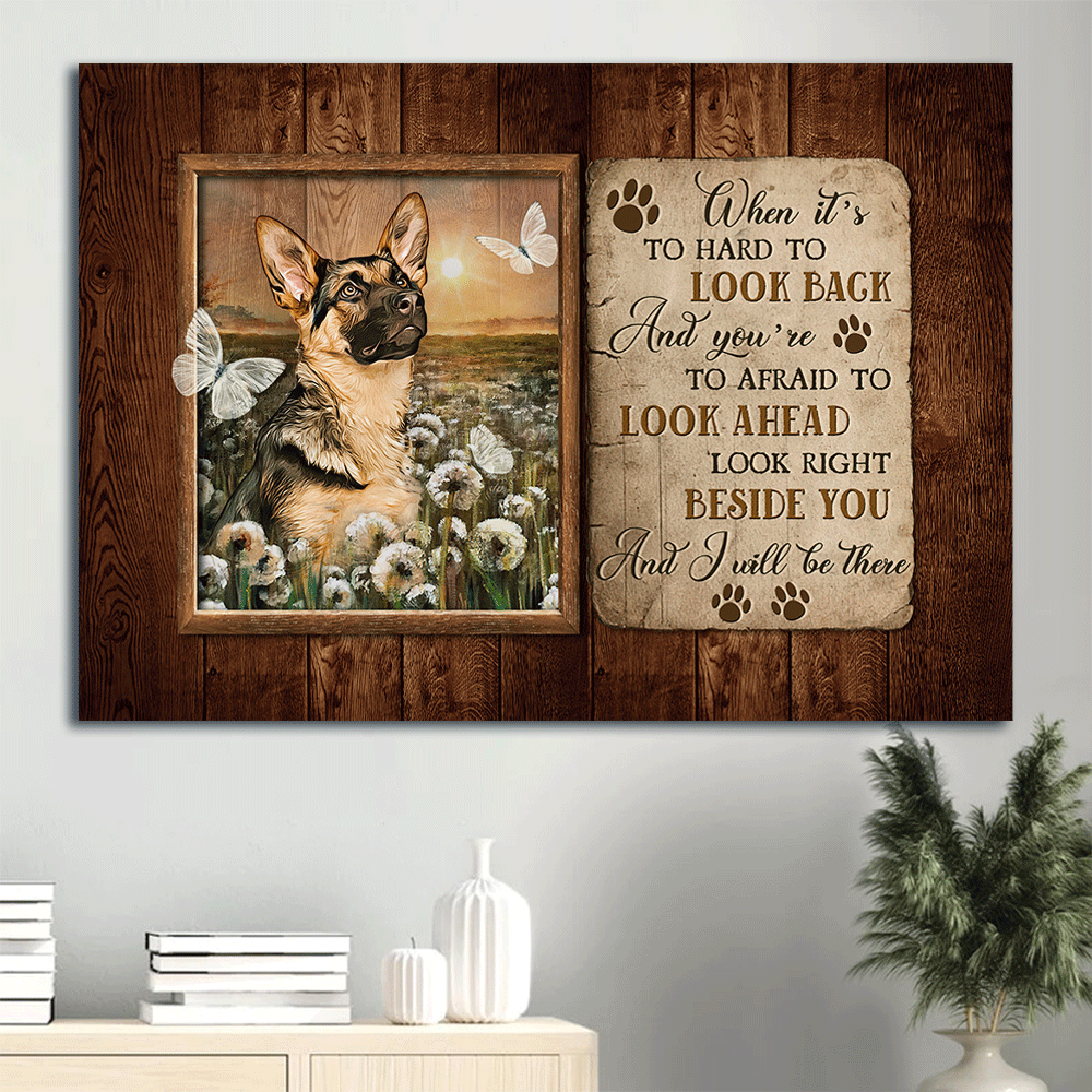 German Shepherd Landscape Canvas- German Shepherd dog, Crystal butterfly, Dandelion - Gift for German shepherd lover- When it's hard to look back - Jesus Landscape Canvas Prints, Christian Wall Art