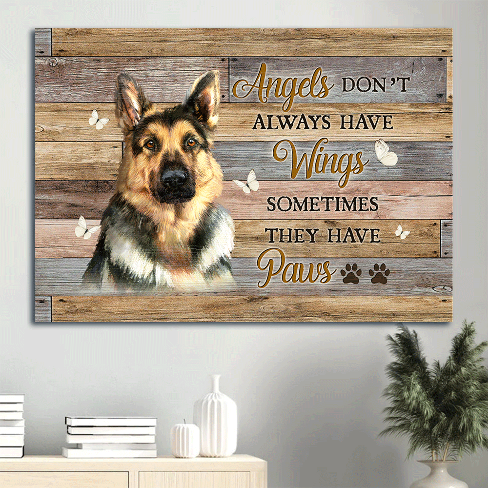 German shepherd Landscape Canvas- German shepherd, Dog drawing, White butterfly- Gift for dog lover- Angels don't always have wings - Jesus Landscape Canvas Prints, Christian Wall Art