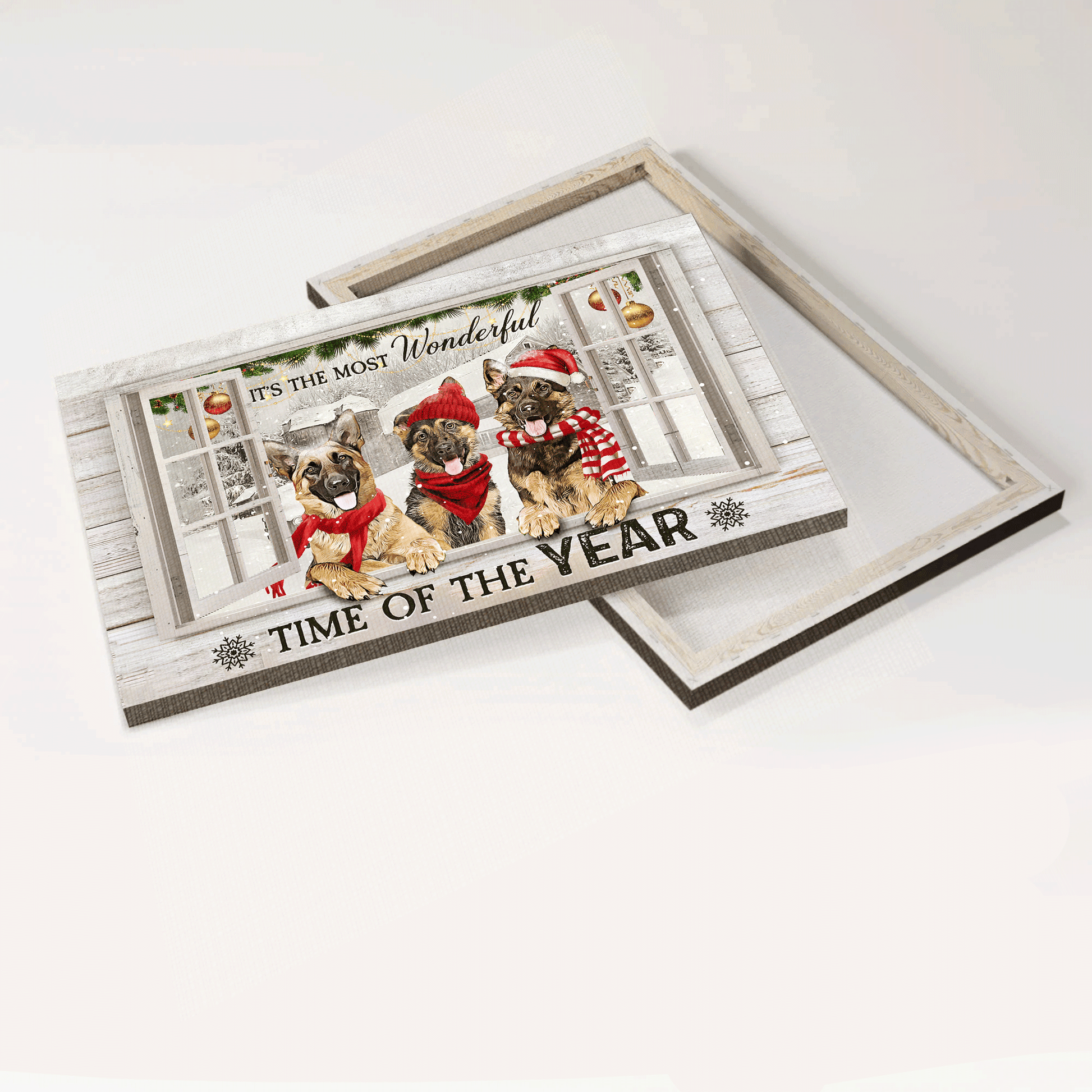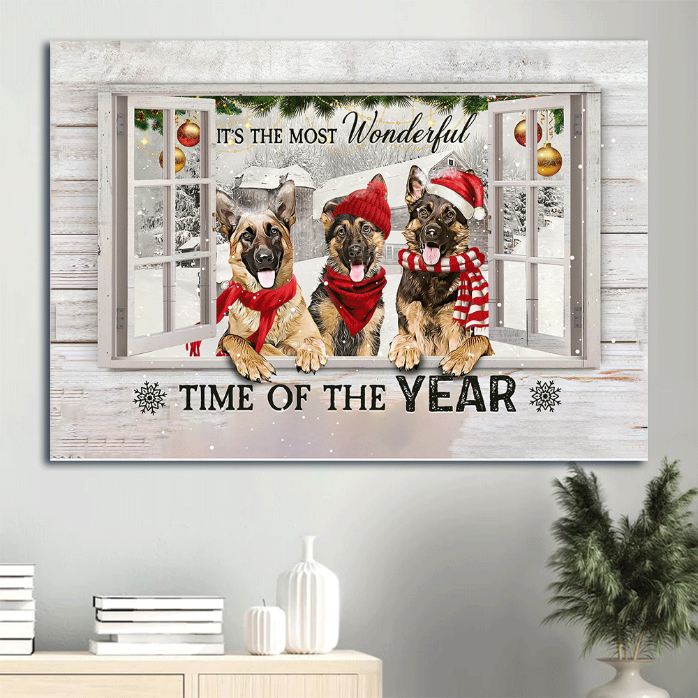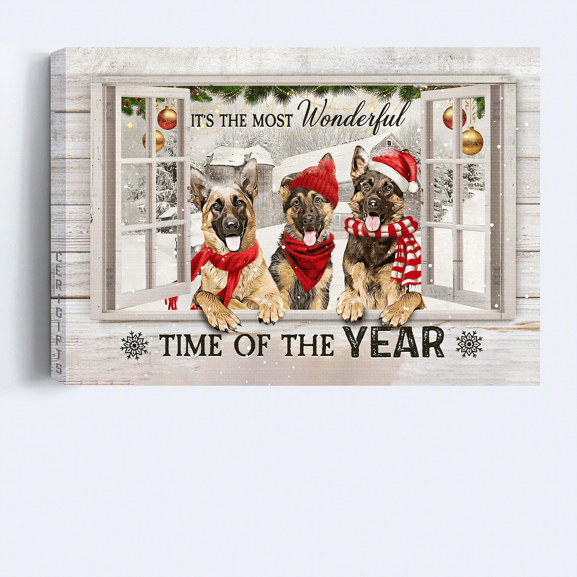 German Shepherd Landscape Canvas- German Shepherd dog, White window, Christmas painting, It's the most wonderful time of the year- Gift for Dog lover - Jesus Landscape Canvas Prints, Wall Art