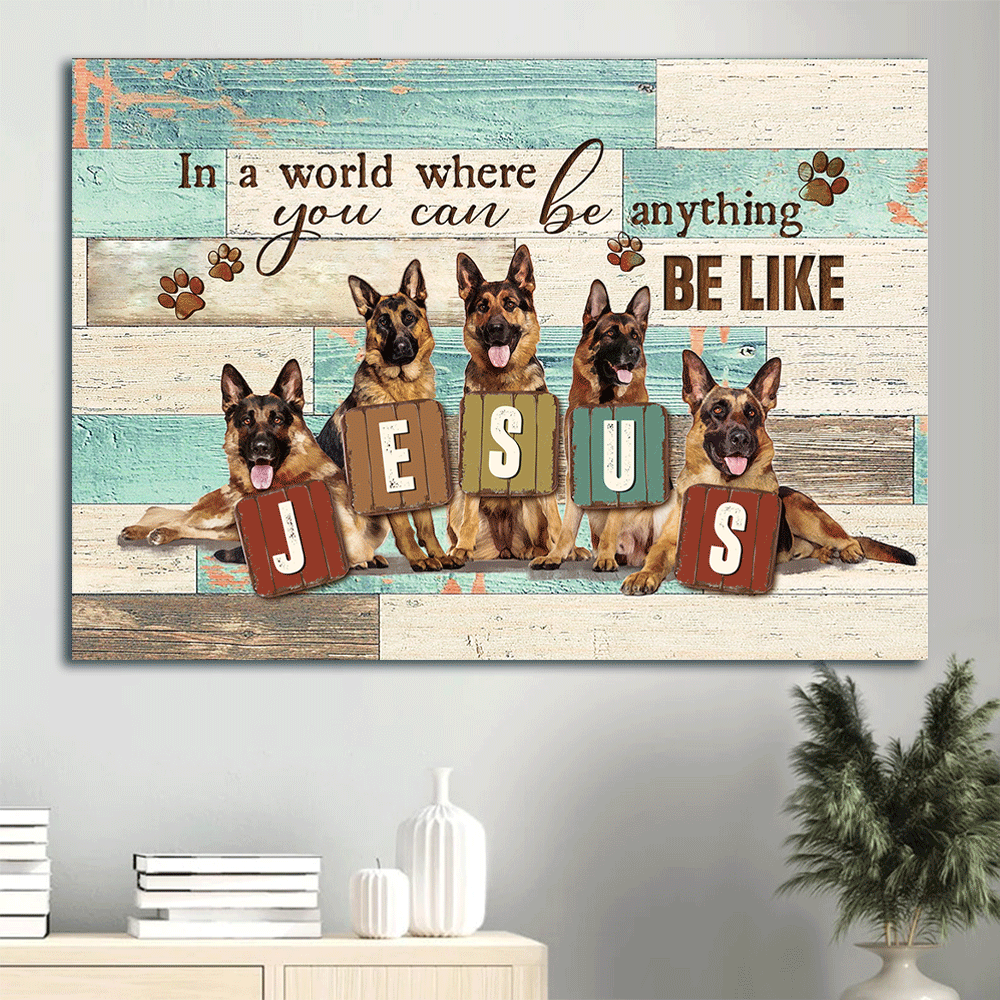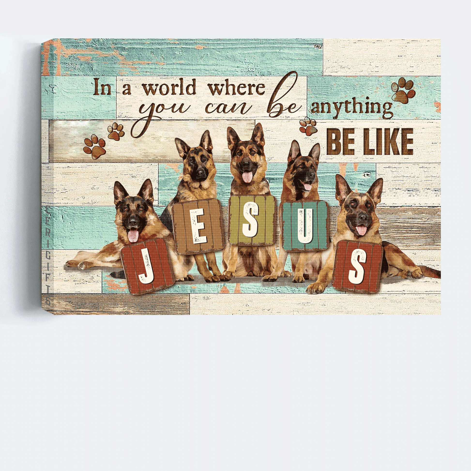 German Shepherd Landscape Canvas- German Shepherd, Jesus painting canvas- Gift for Christian, dog lover- In a world you can be anything, be like Jesus - Dog Landscape Canvas Prints, Wall Art