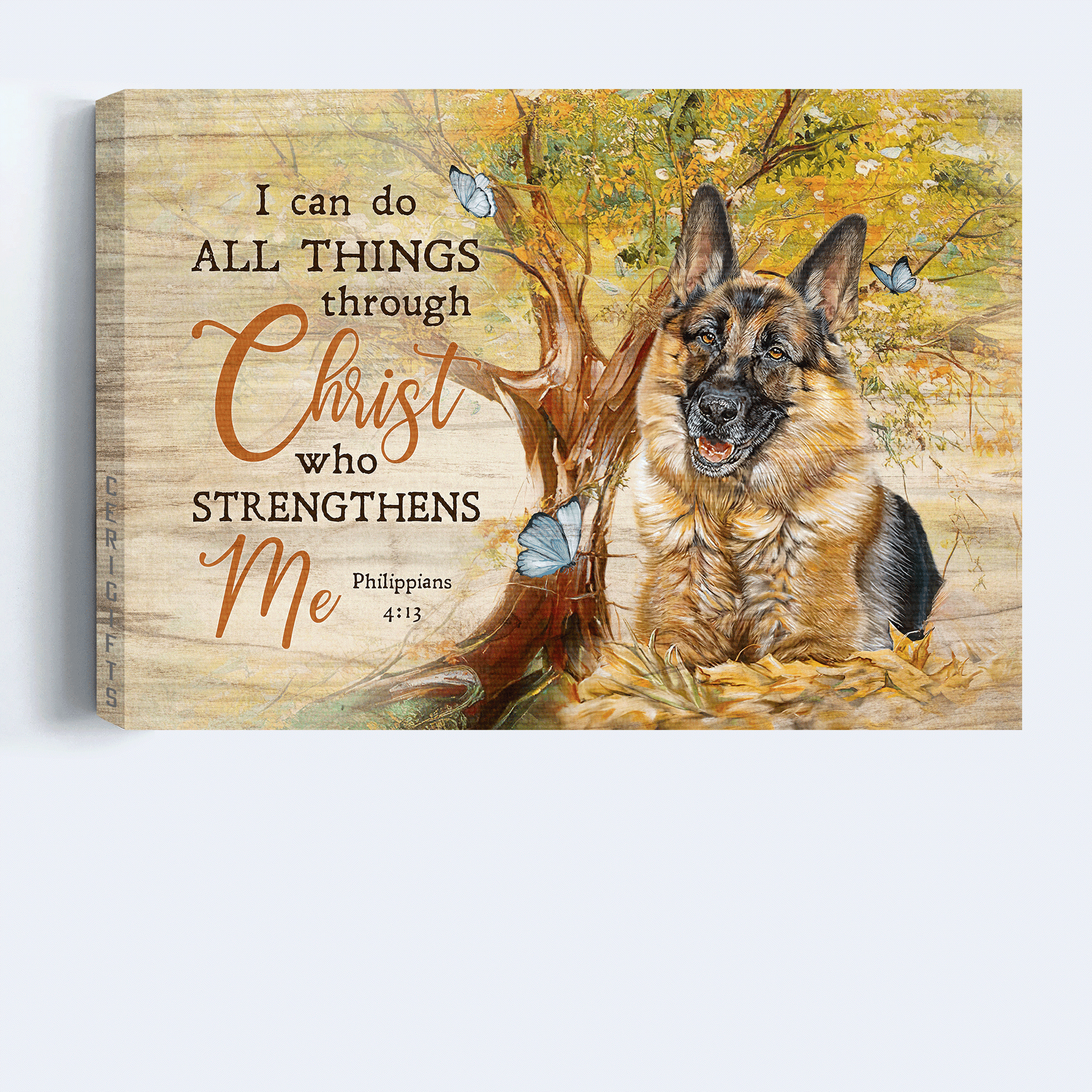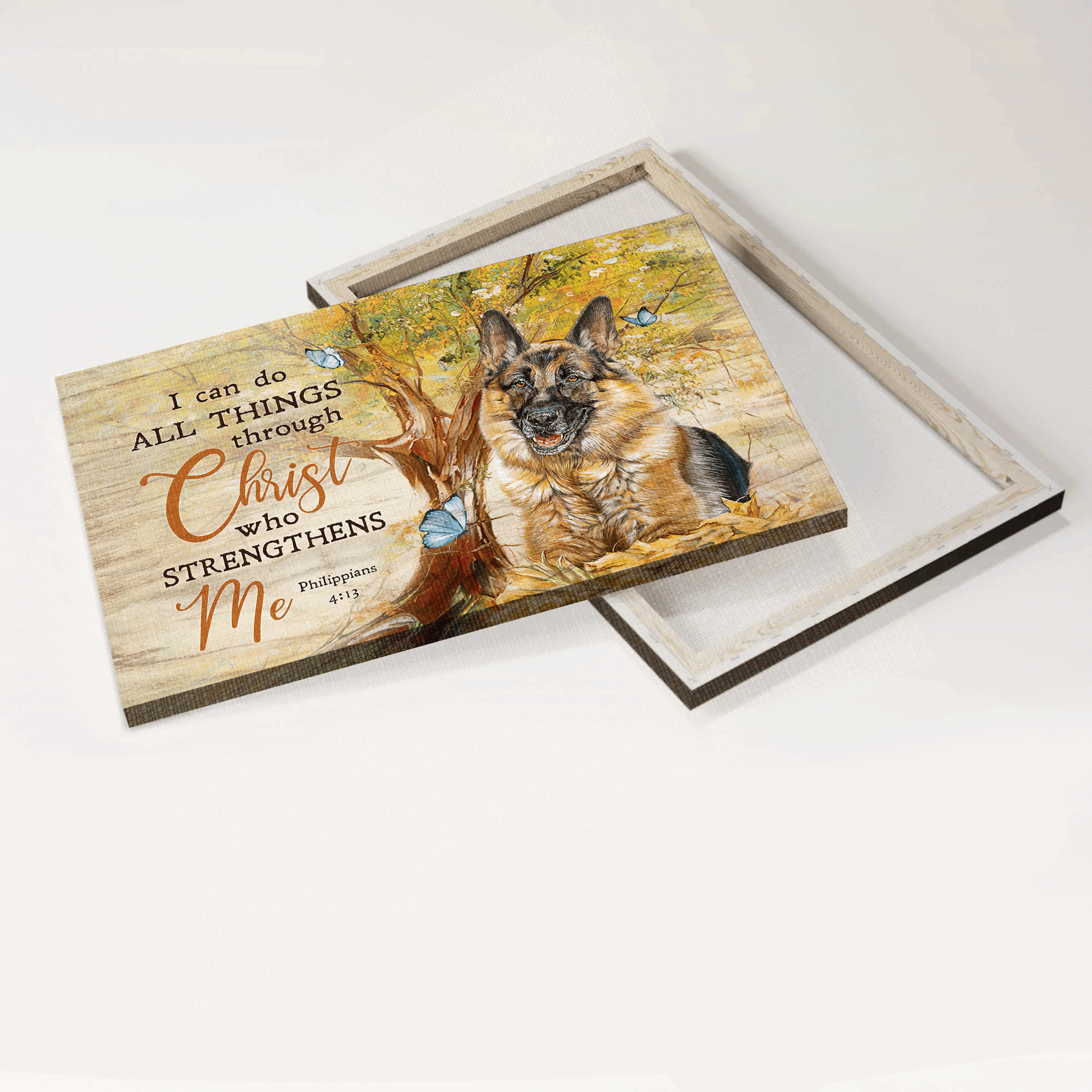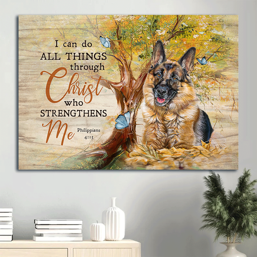German shepherd Landscape Canvas- German shepherd painting, Green forest- Gift for dog lover- I can do all things through Christ who strengthens me - Jesus Landscape Canvas Prints, Christian Wall Art.