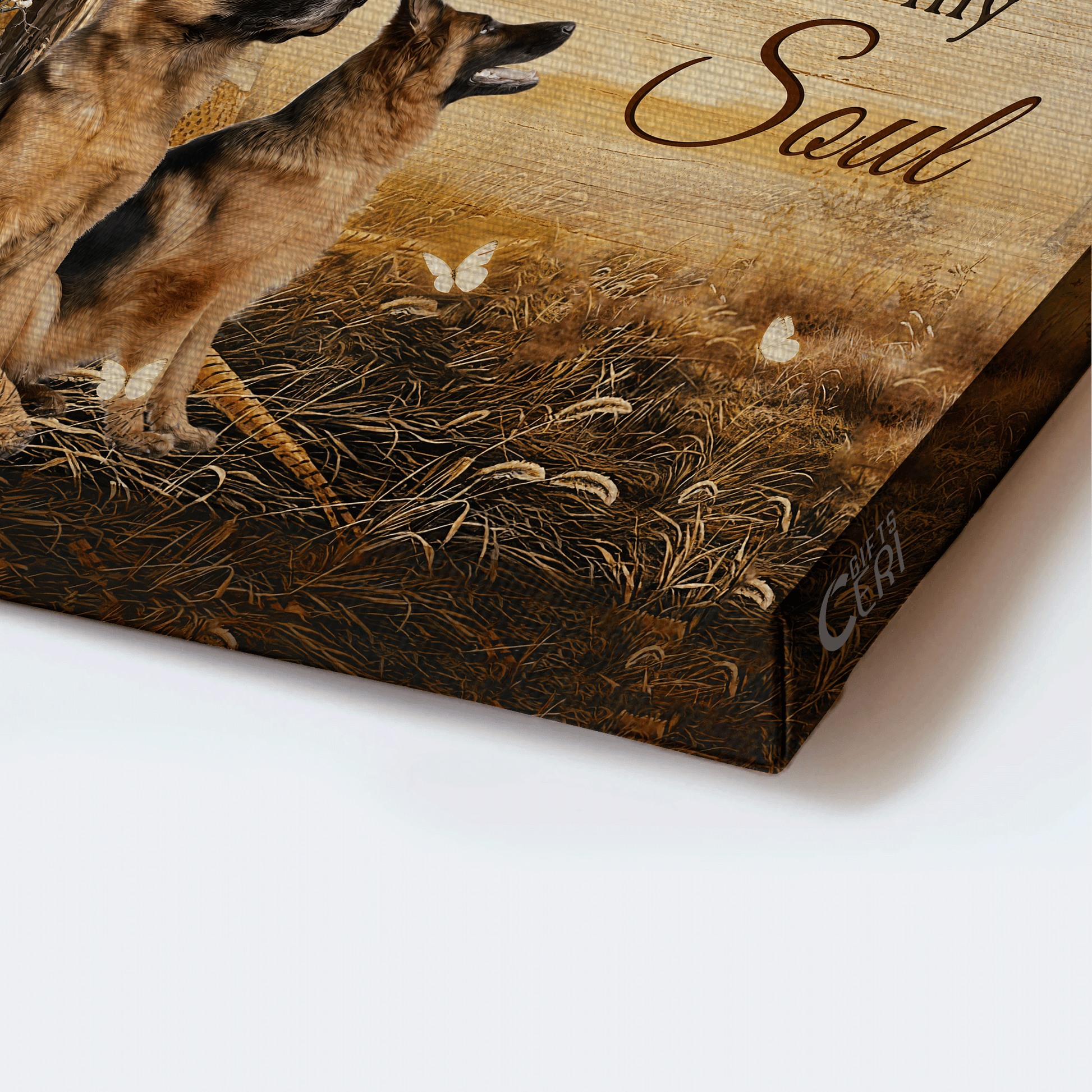 Which canvas do you think would bring the most brightness to your home? The most appropriate thing is undoubtedly this German Shepherd Landscape Canvas- German Shepherd, The three brother, The rugged crosses- Gift for dog lover- It is well with my soul - Dog Landscape Canvas. German shepherd dogs are famous for their bravery, intelligence, and ability. The fascinating scenery with the greatest dog in the world, a peaceful countryside and the rugged cross will definitely make your home full of happiness.