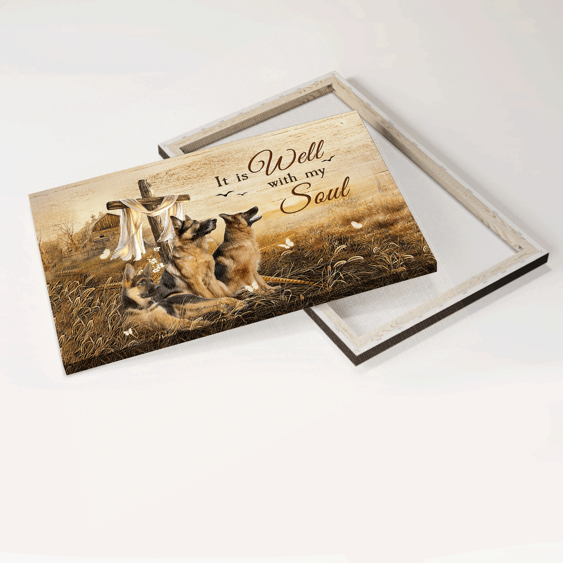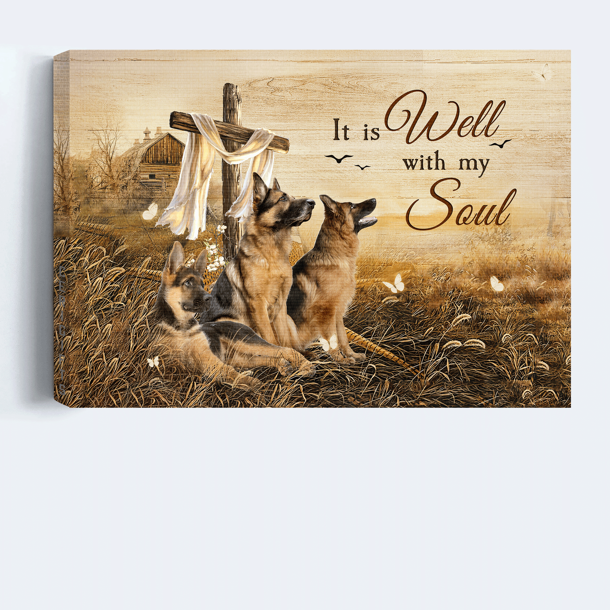 German Shepherd Landscape Canvas- German Shepherd, The three brother, The rugged crosses- Gift for dog lover- It is well with my soul - Dog Landscape Canvas