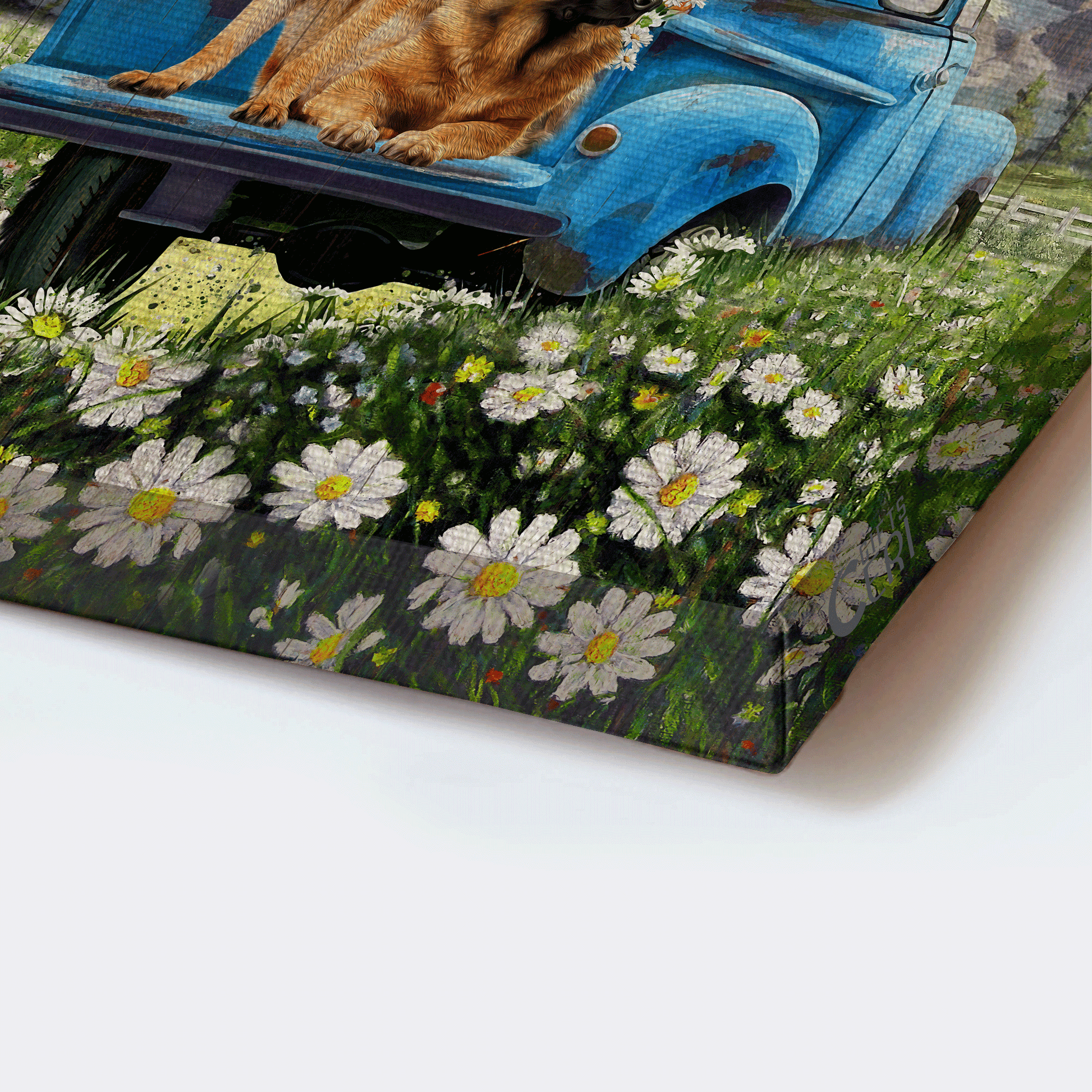 Add more colors to your living space with this colorful German Shepherd Portrait Canvas- Daisy field, German shepherd dogs, Ladybug car, Orange butterfly canvas- Gift for German Shepherd lover- What a wonderful world. This art is designed with a pair of German Shepherds sitting on a blue car on a colorful daisy flower field, which are metaphors for loyal love. Therefore, our German Shepherd Portrait Canvas- Daisy field, German shepherd dogs, Ladybug car, Orange butterfly canvas- Gift for German Shepherd lover- What a wonderful world will bring a sense of peace to your house. This art is also a perfect present for your friends who love adorable German Shepherds and pure flowers.