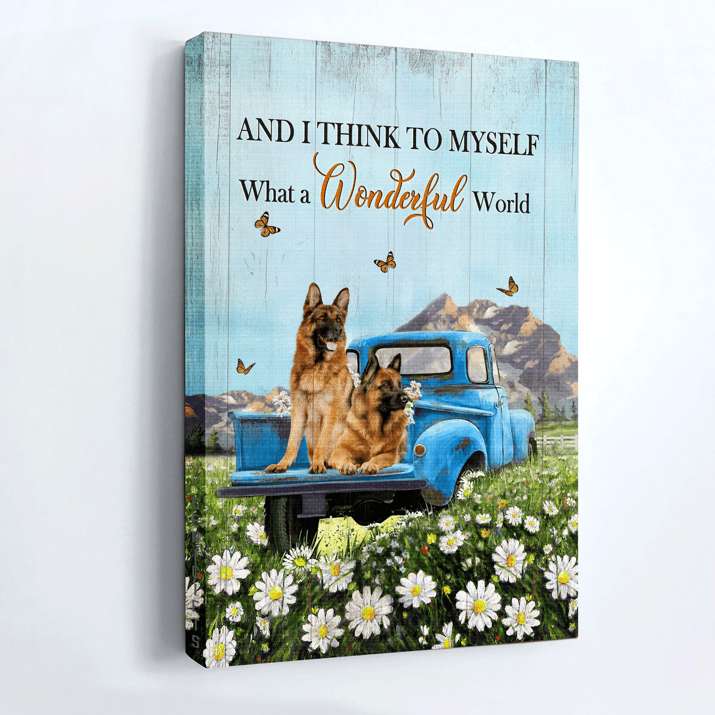 German Shepherd Portrait Canvas- Daisy field, German shepherd dogs, Ladybug car, Orange butterfly canvas- Gift for German Shepherd lover- What a wonderful world suits any room from the kitchen, bedroom, bathroom, living room to outdoor space.