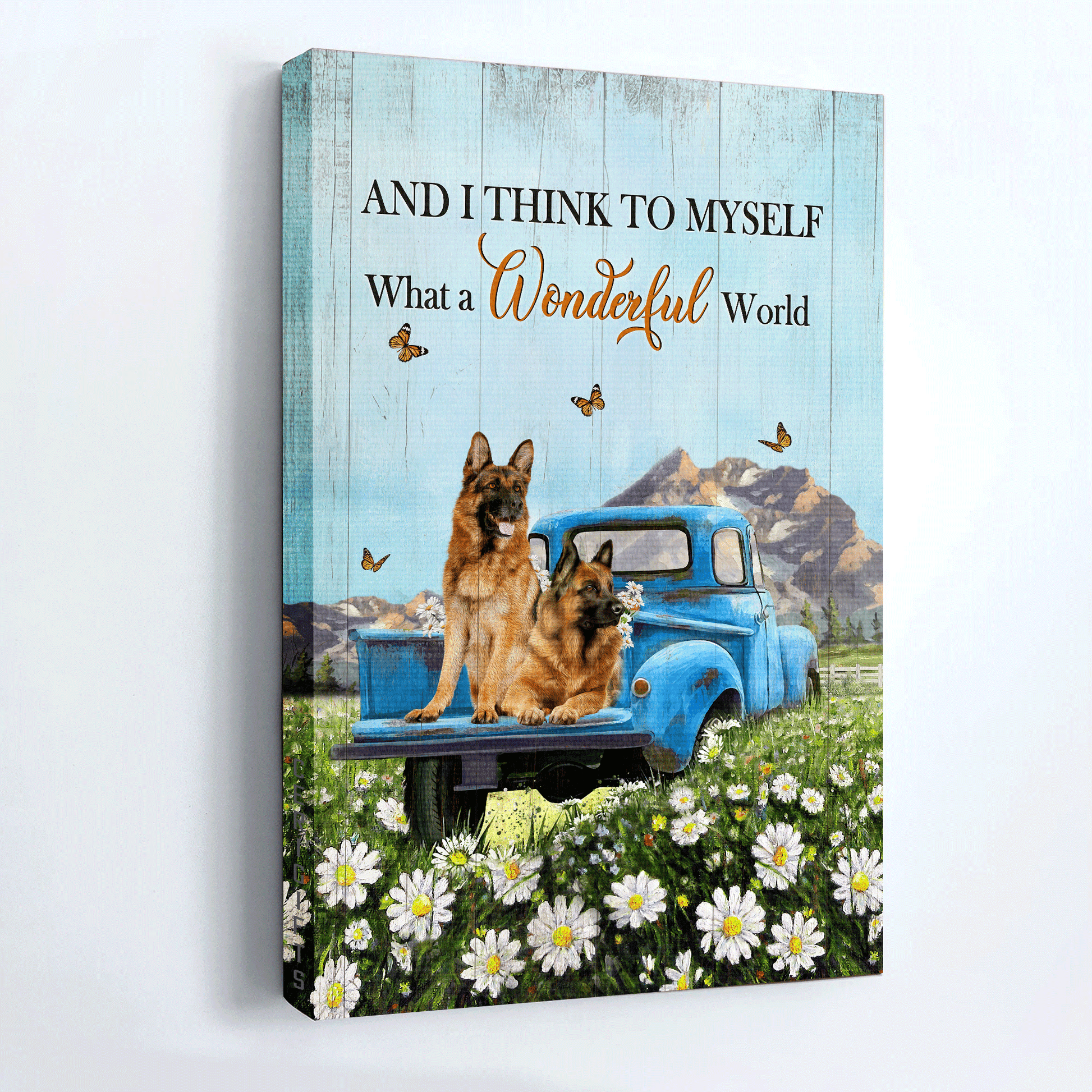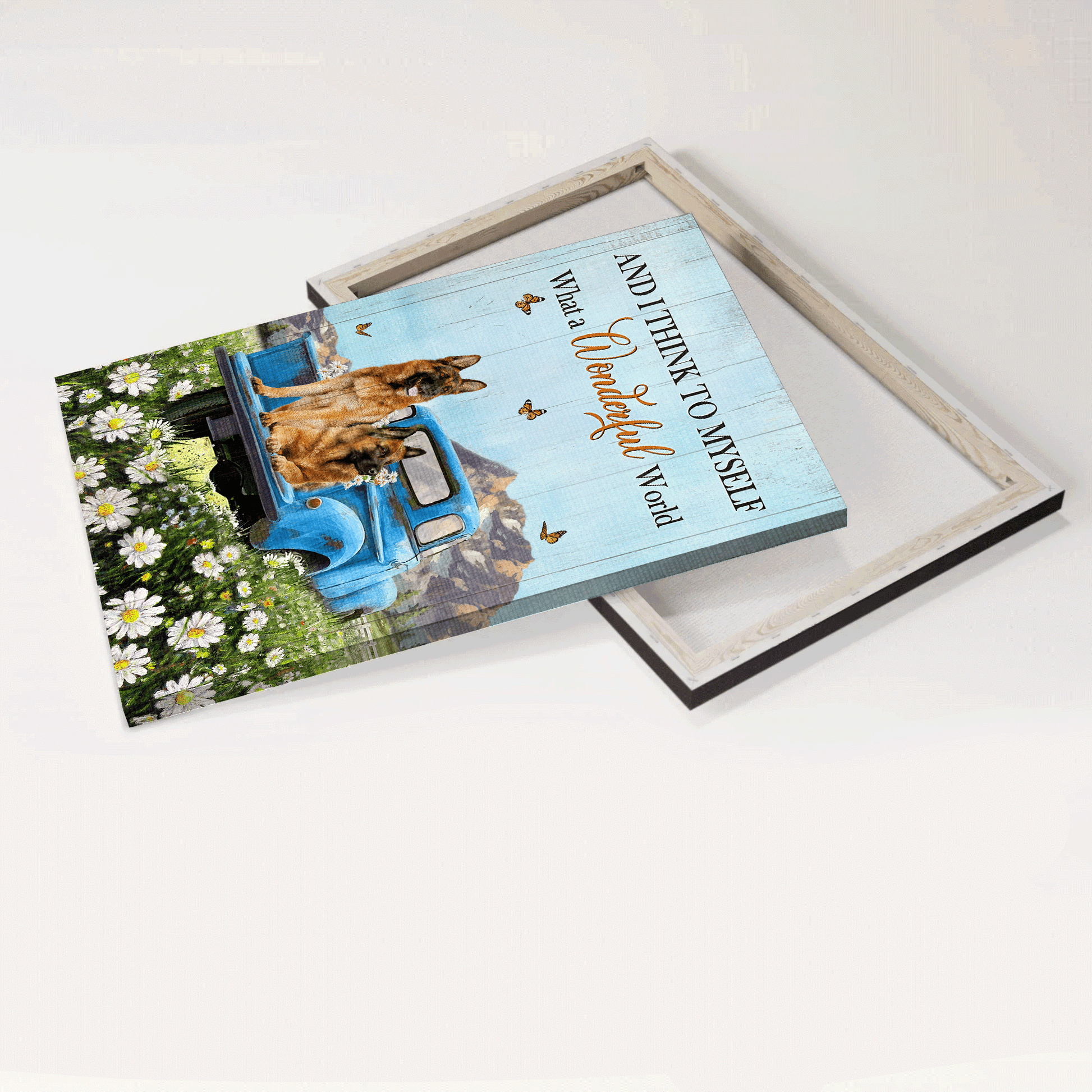 German Shepherd Portrait Canvas- Daisy field, German shepherd dogs, Ladybug car, Orange butterfly canvas- Gift for German Shepherd lover- What a wonderful world