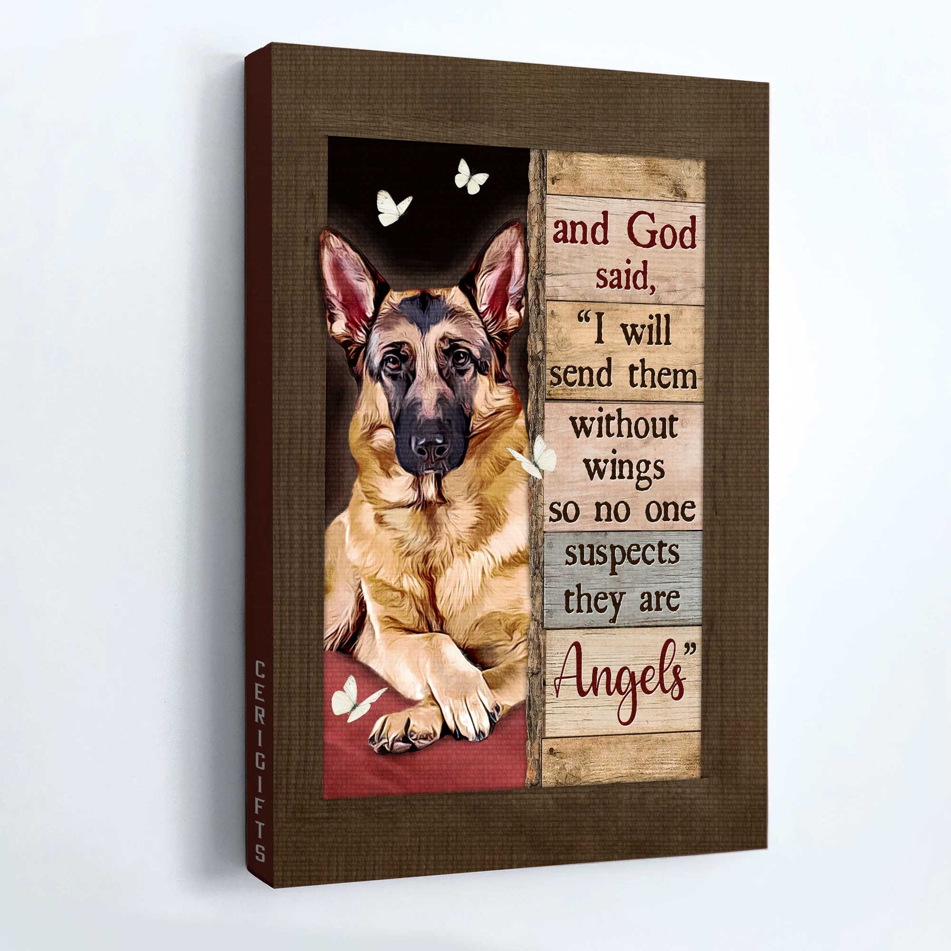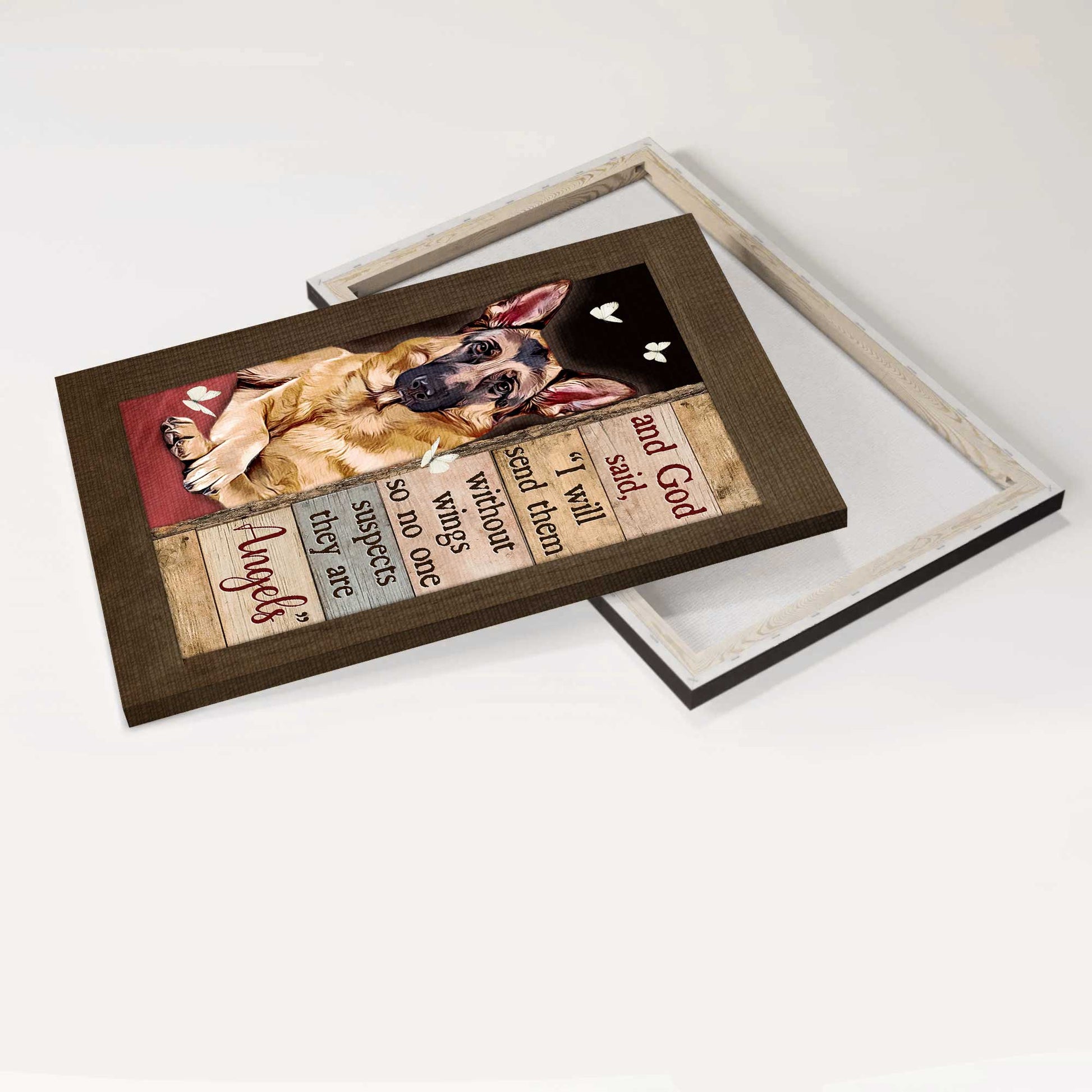 German shepherd Portrait Canvas- German shepherd drawing, Butterfly canvas- Gift for Dog lover- I will send them without wings - Jesus Portrait Canvas Prints, Christian Wall Art