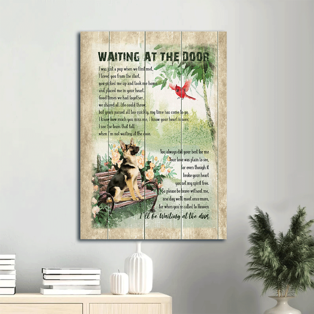German Shepherd Portrait Canvas- German Shepherd, Park, Cardinal- Gift for dog lover- Waiting at the door for you - Portrait Canvas Prints, Wall Art.