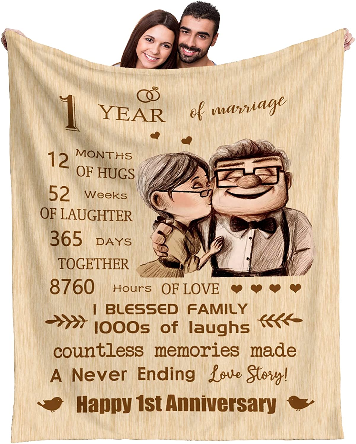 Gift For Couple Blanket - 1 Years of Marriage Gift for Wife, Parents, Friends Couple , Romantic Throw Blankets Valentine Day Birthday Gifts - 1St Anniversary Blanket