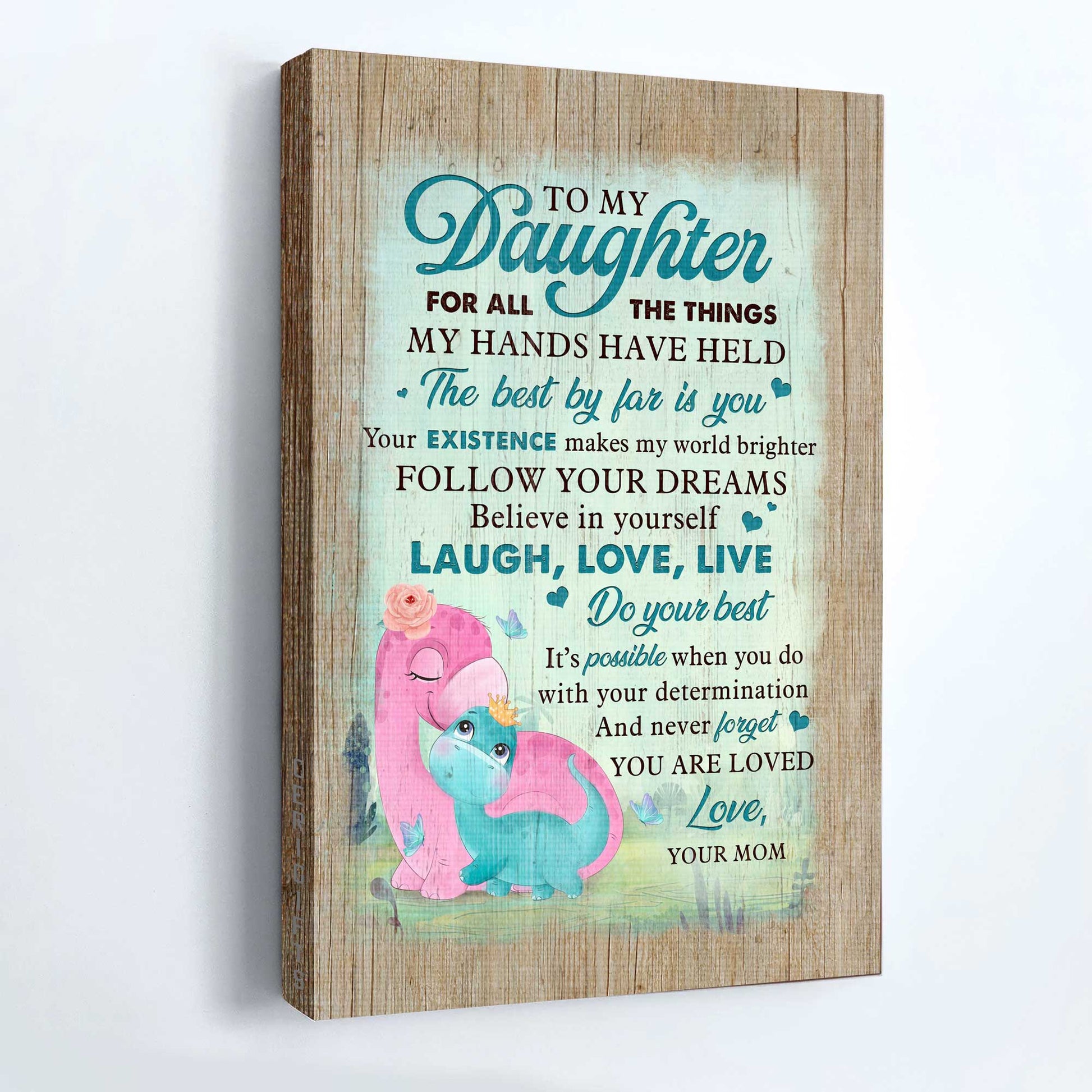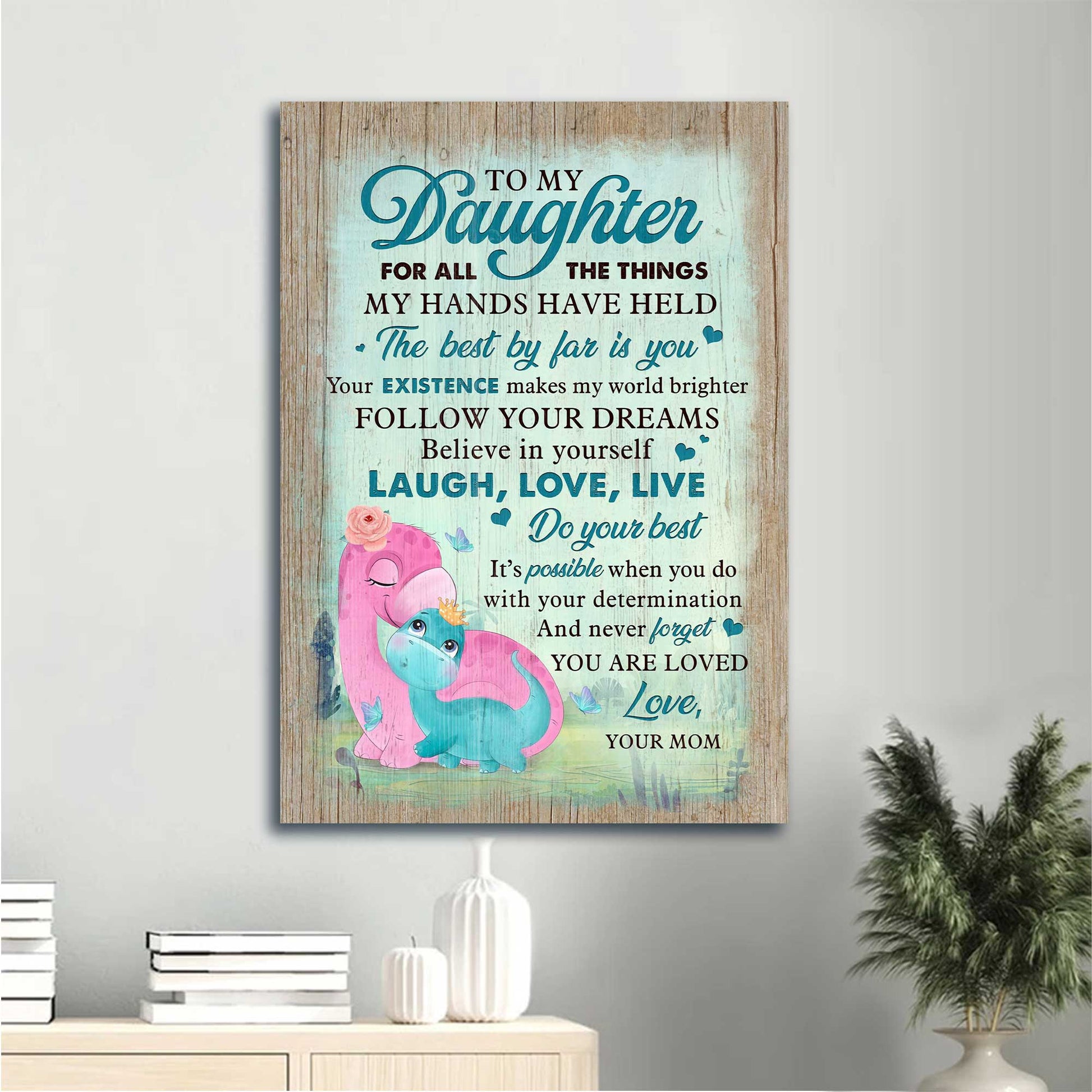 Gift for Daughter- Mom to daughter, Dinosaur Family, The best by far is you - Family Portrait Canvas Prints, Wall Art.