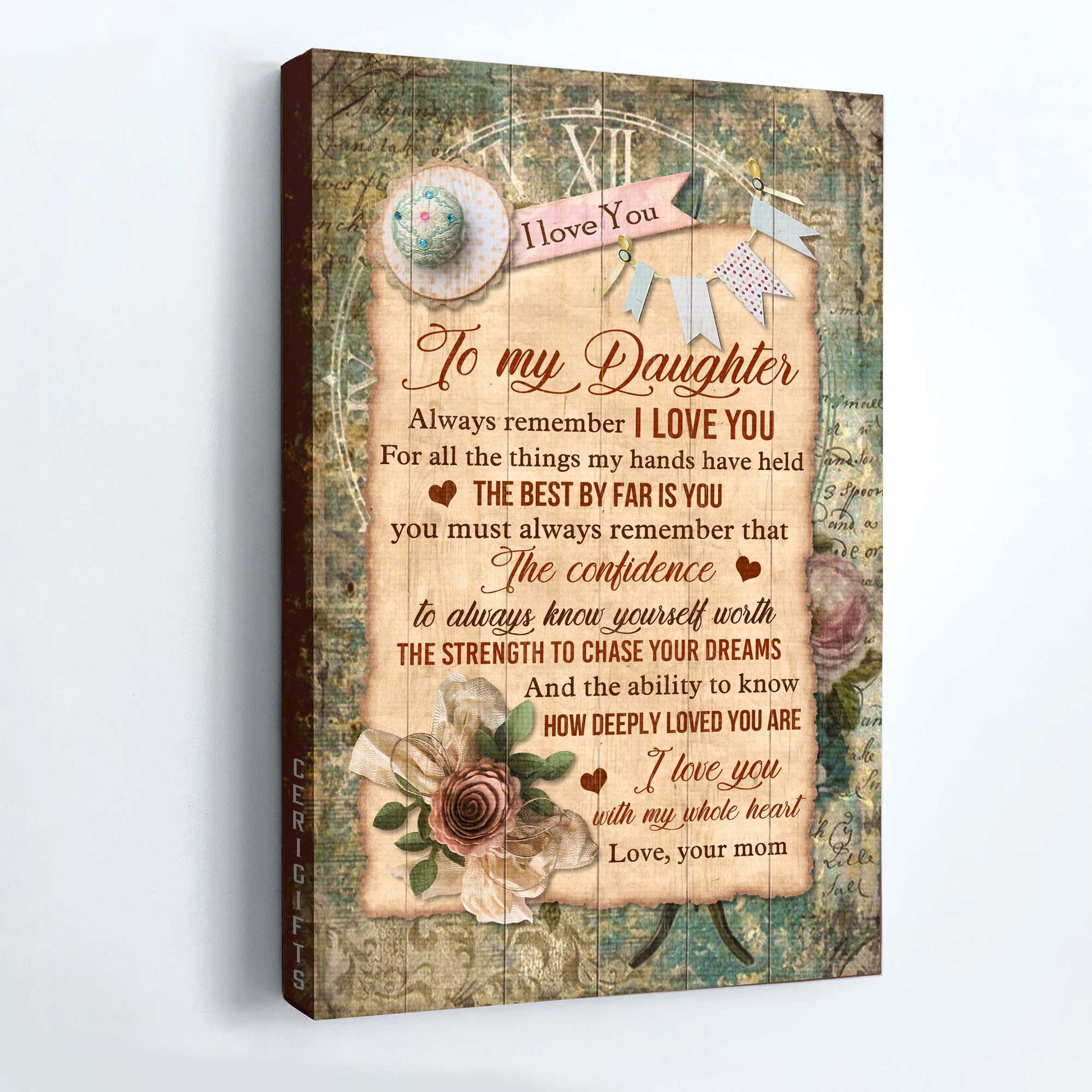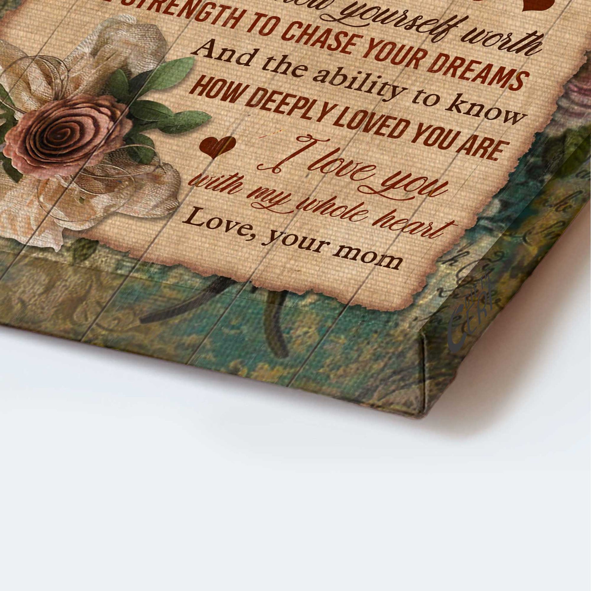 Gift for Daughter- Mom to daughter, Rose, Vintage Painting, I love you with my whole heart - Family Portrait Canvas Prints, Wall Art