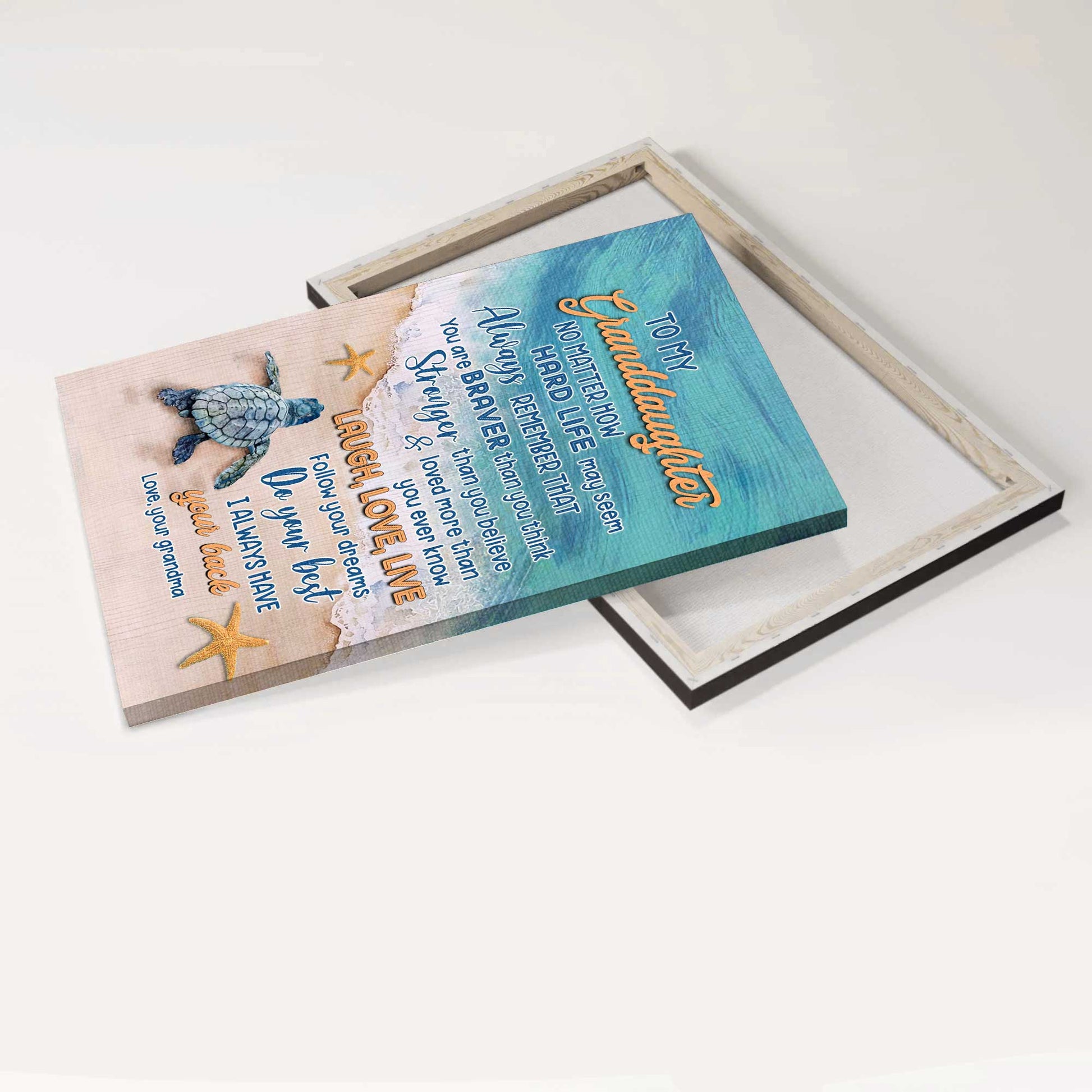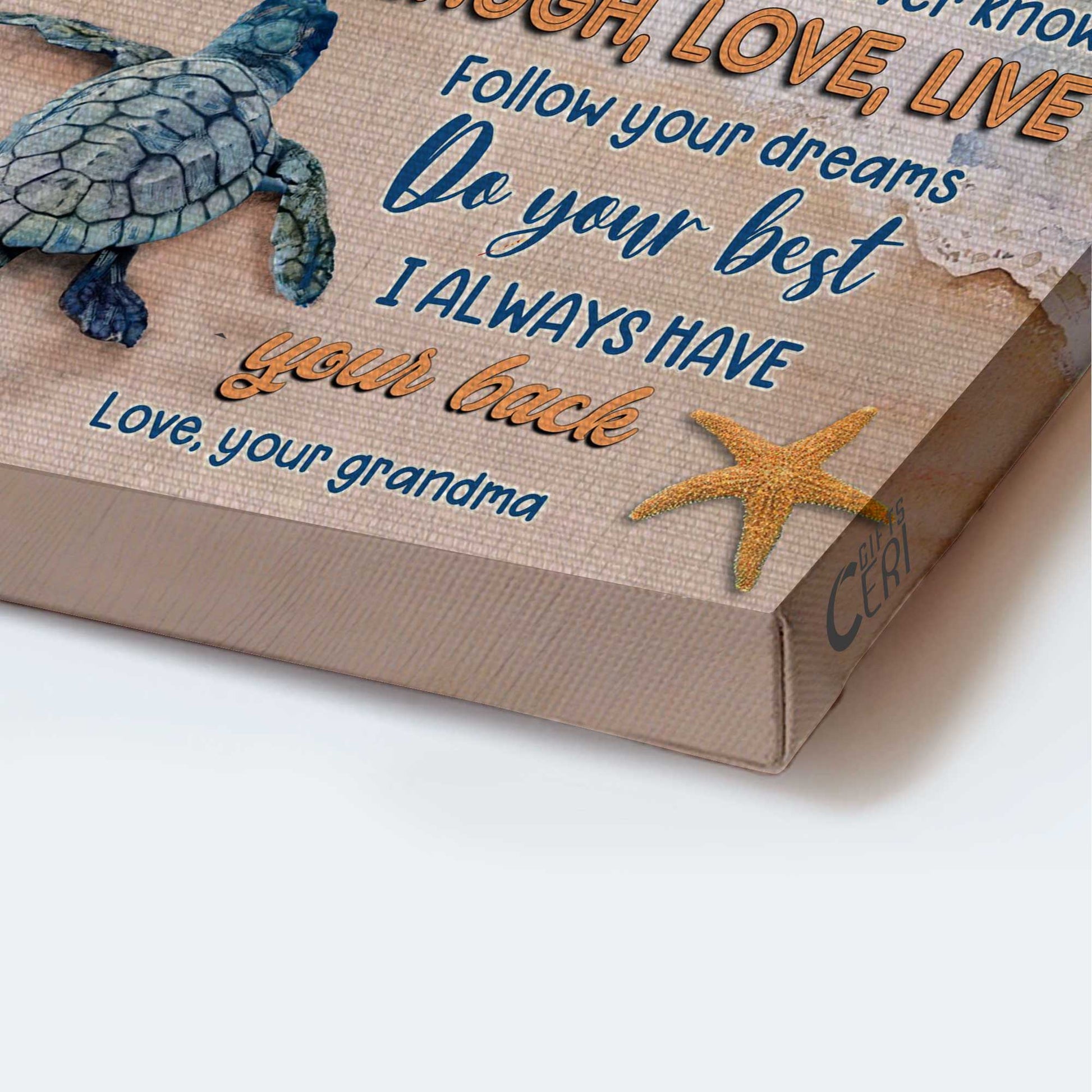 Gift for granddaughter- Grandma to Granddaughter, Sea turtle, I always have your back - Family Portrait Canvas Prints, Wall Art is a beautiful canvas that may be put in any area of the house, such as the living room, bedroom, kitchen, and even the outdoor.