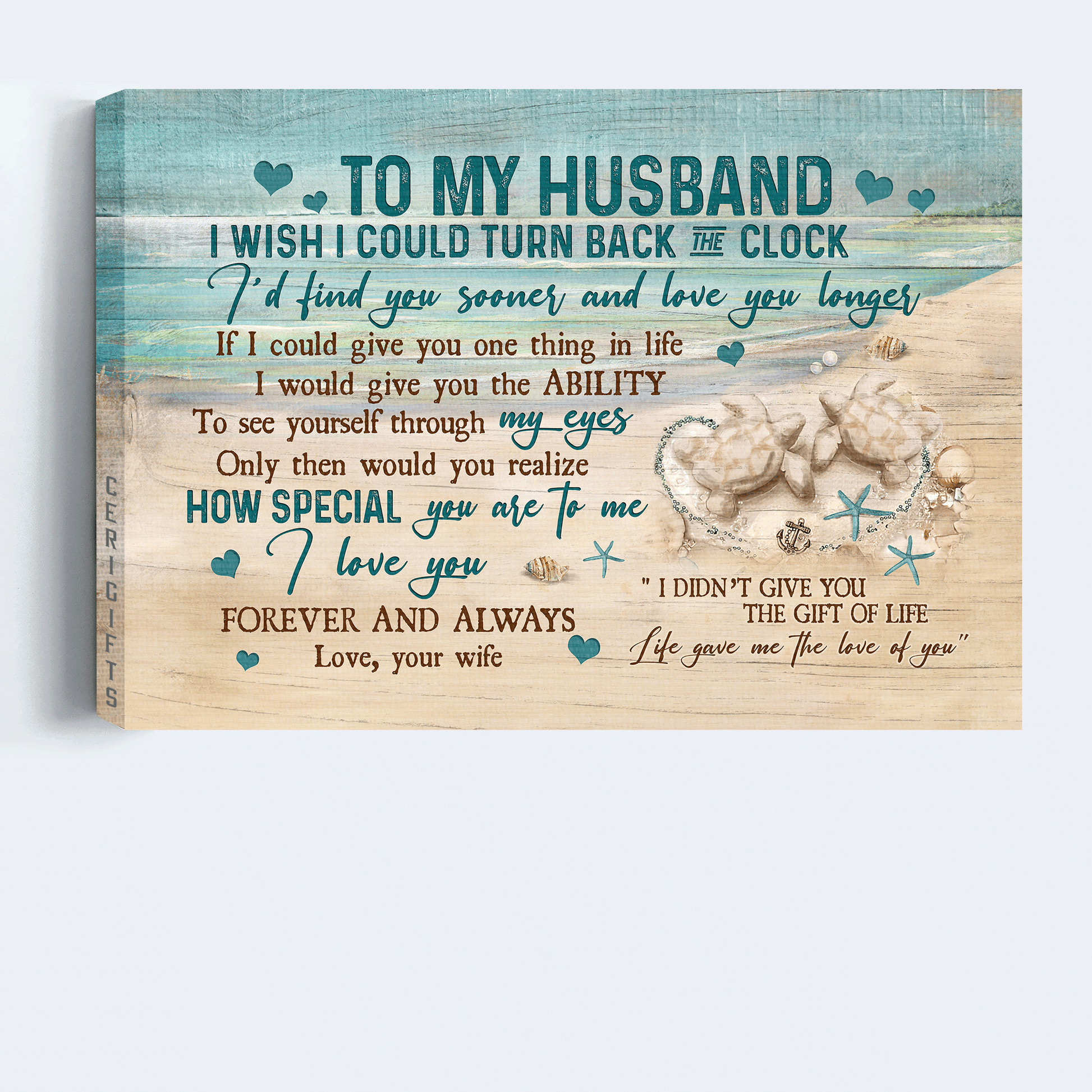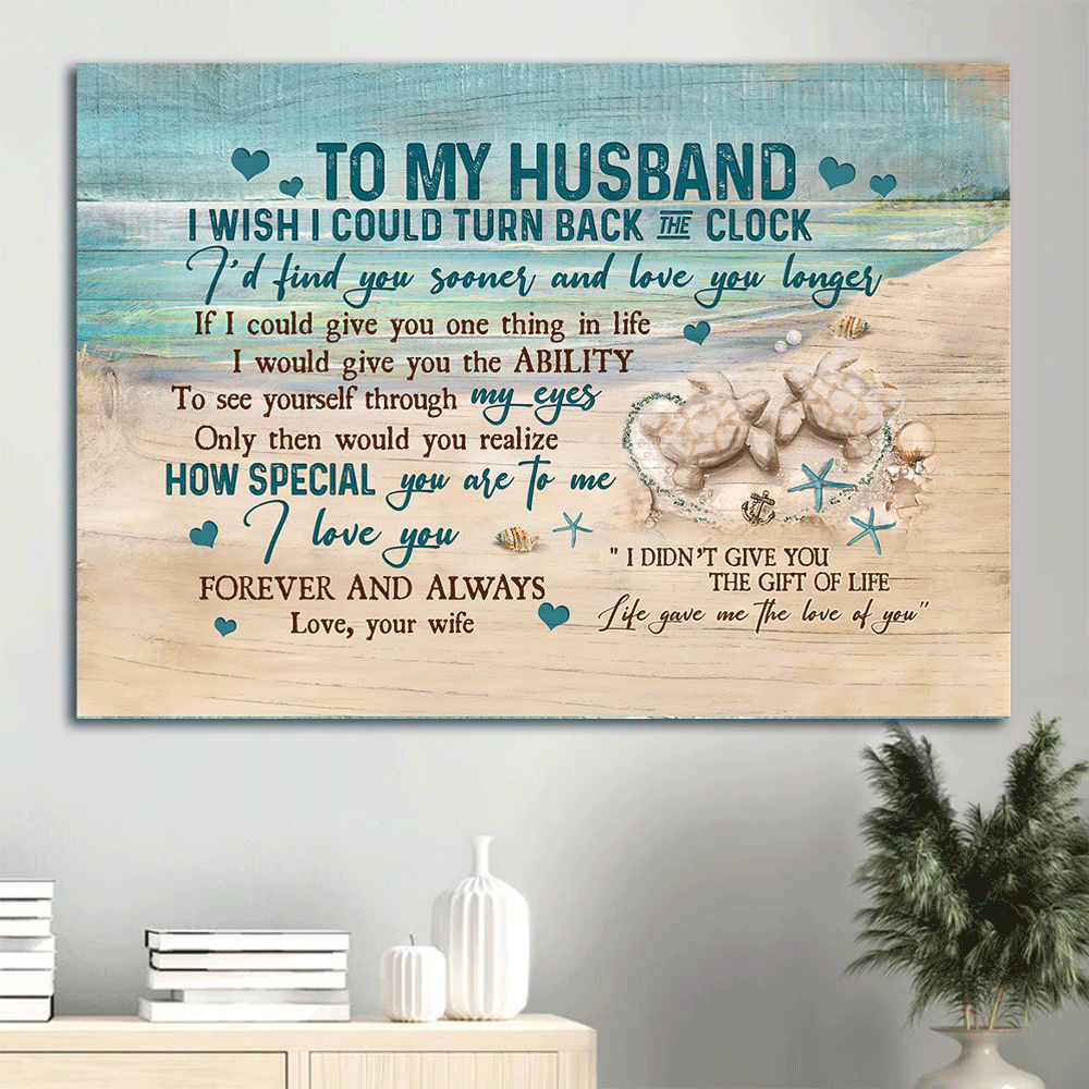 Gift For Husband Landscape Canvas - To My Husband, Sand Turtle, Sand Beach, Couple Canvas - Valentine's Day Gift For Couple, Spouse, Lover - Life Gave Me The Love Of You