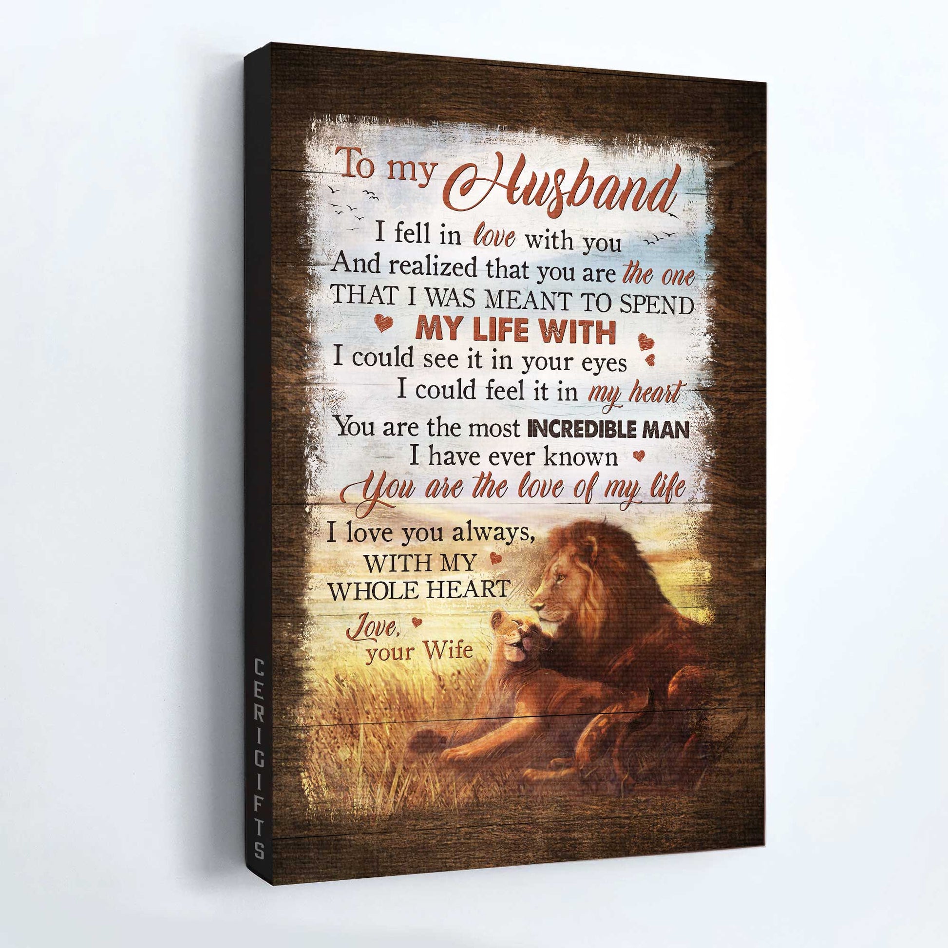 Have you ever struggled to convey your feelings or thoughts to your loved ones? If that's the fact, then Gift For Husband Portrait Canvas - To My Husband, Lion Artwork, Couple Canvas - Valentine's Day Gift For Couple, Spouse, Lover - You Are The Love Of My Life Canvas Prints, Wall Art is perfect for you right now. With the emotional message, the canvas can express your emotion to your beloved husband. We hope that Gift For Husband Portrait Canvas - To My Husband, Lion Artwork, Couple Canvas - Valentine's Day Gift For Couple, Spouse, Lover - You Are The Love Of My Life Canvas Prints, Wall Art can help you have a closer relationship with your partner and make your home much more gorgeous when hung on the wall.