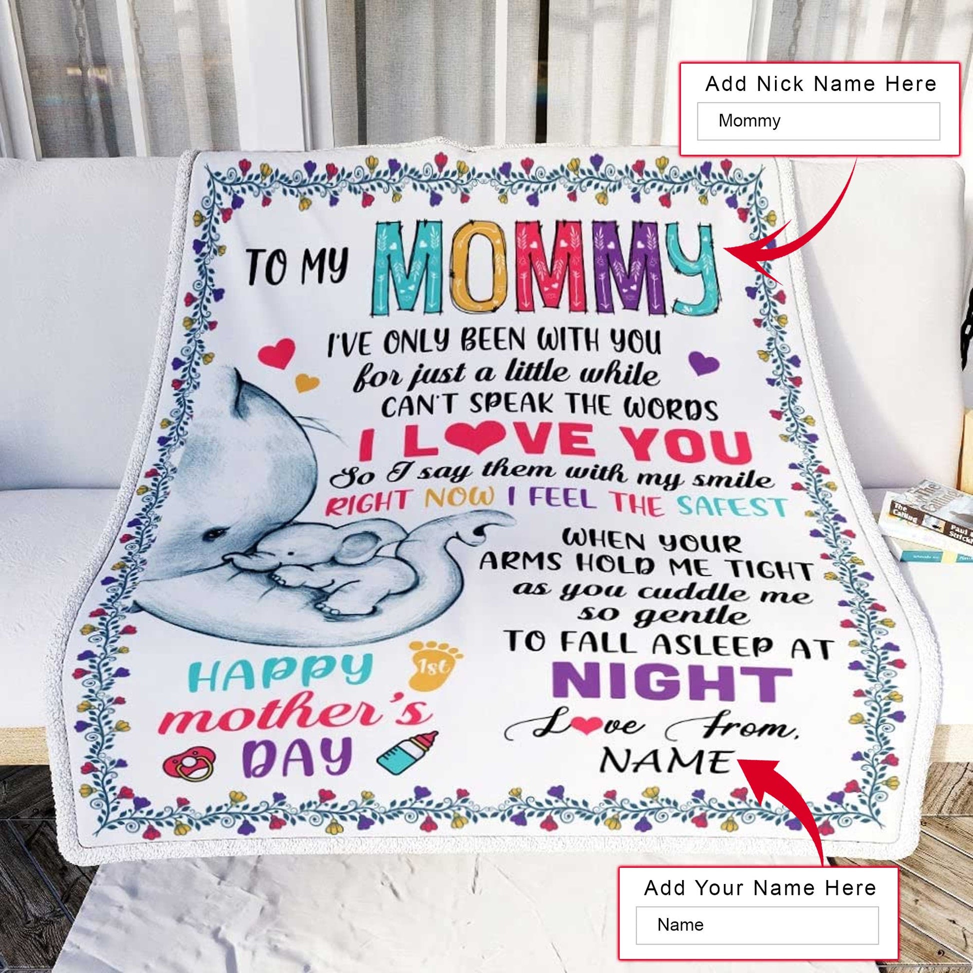 Gift For Mom Personalized Blanket - Custom Name, To My Mommy First Time Mom Elephant Blanket - Gift For Mother's Day, Presents For Mom