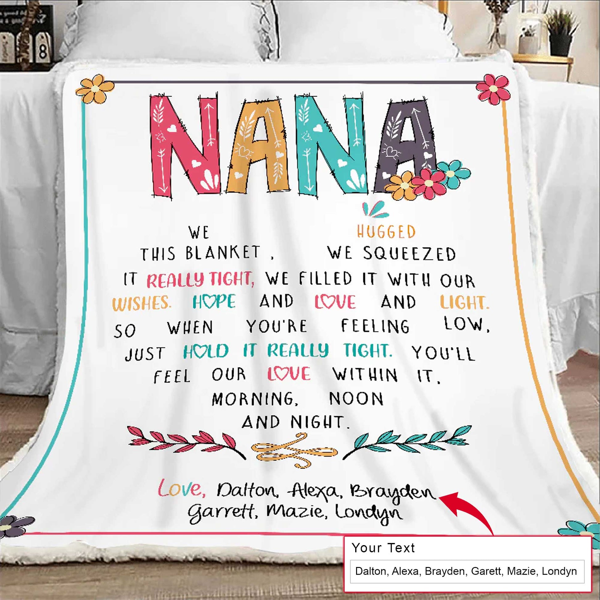 Gift For Mom Personalized Blanket - Nana, Custom Name Blanket - Gift For Mother's Day, Presents For Grandma Mimi Nana Gigi Gaga From Grandkids