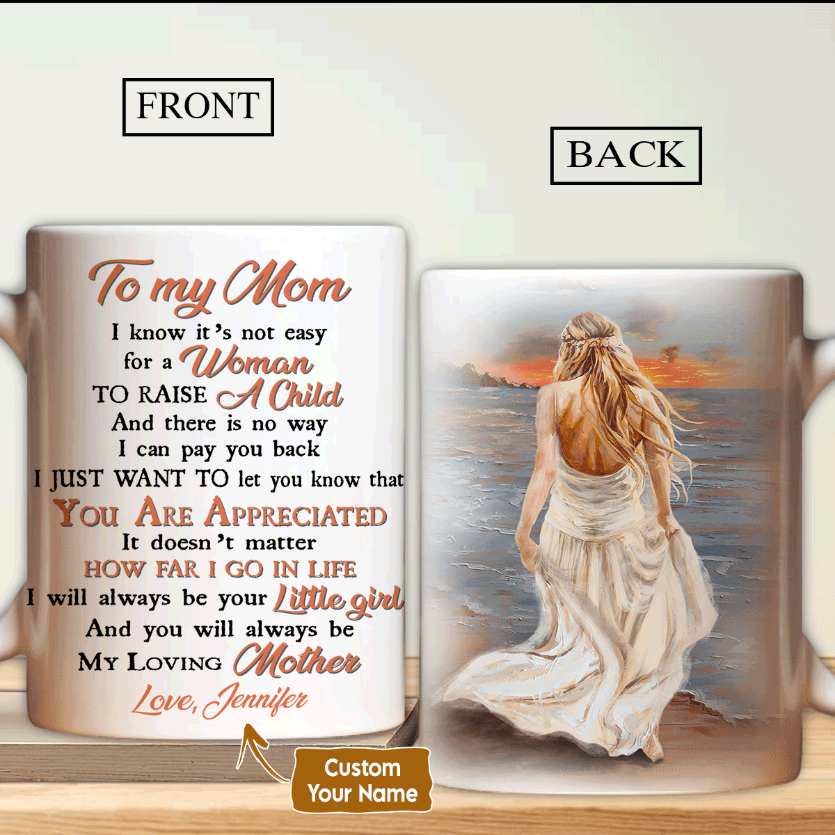 Gift For Mom Personalized Mug - Daughter to mom, Beautiful lady, Walking on the beach Mug - Custom Gift For Mom From Daughter Son, Mother's Day, Anniversary, Birthday, Presents for Mom - My loving mother, I love you Mug