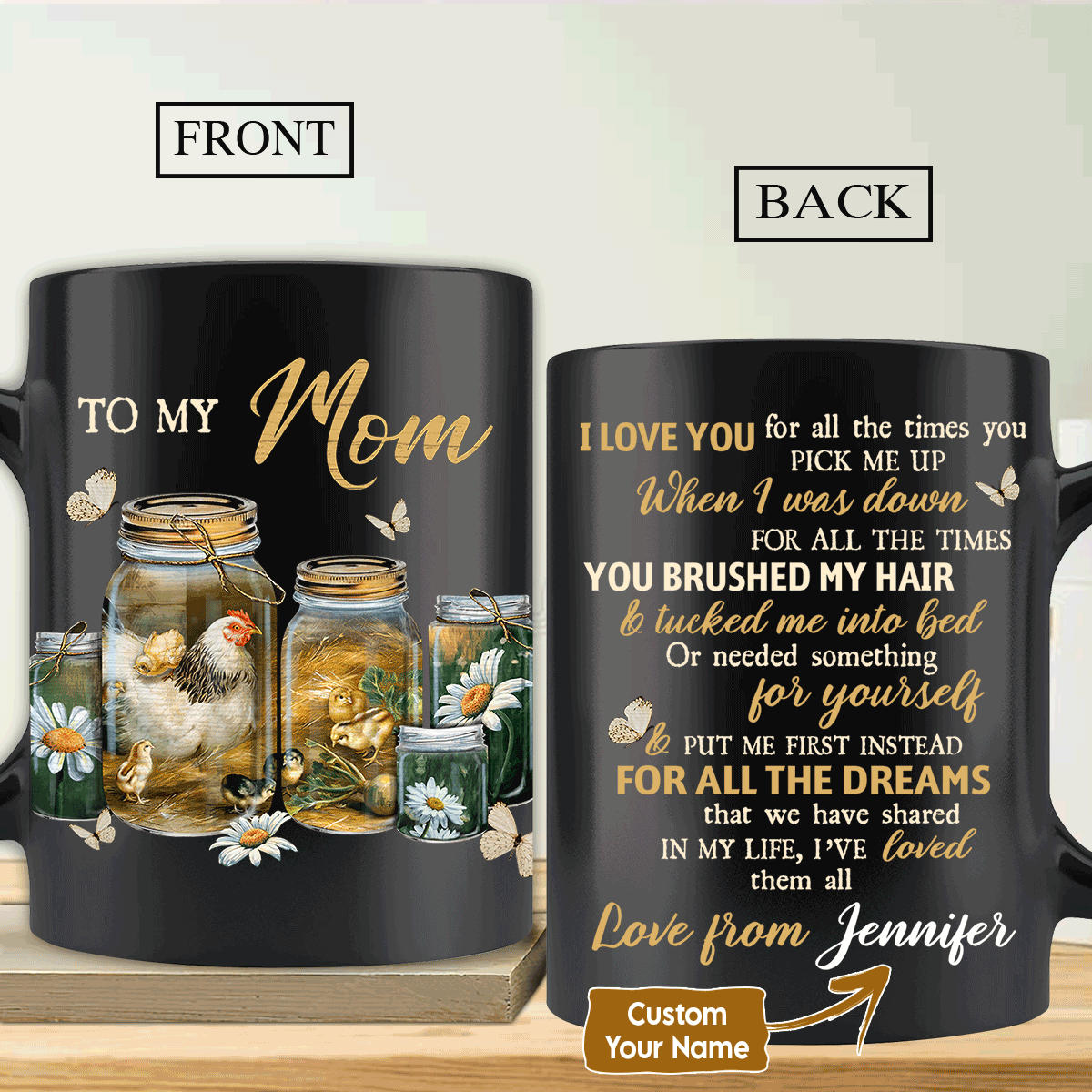 Gift For Mom Personalized Mug - Daughter to mom, Crystal bottle, Daisy flower Mug - Custom Gift For Mom From Daughter Son, Mother's Day, Anniversary, Birthday, Presents for Mom - I love you for all the times Mug