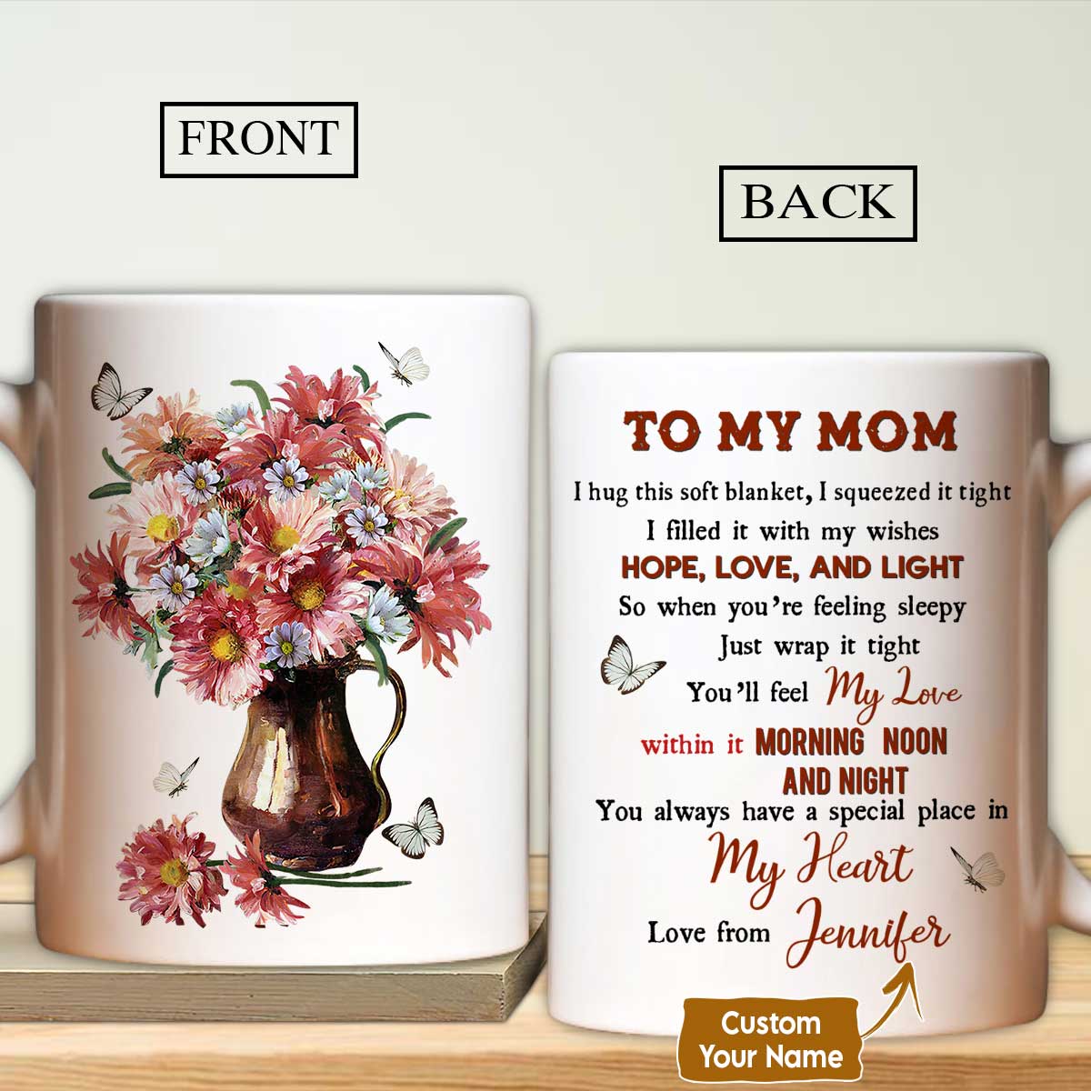 Gift For Mom Personalized Mug - Daughter to mom, Flower vase, White butterfly, Colorful daisy Mug - Custom Gift For Mother's Day, Presents for Mom