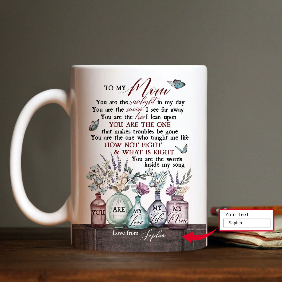 Gift For Mom Personalized Mug - Daughter to mom, Glass bottle, Elegant flower Mug - Custom Gift For Mother's Day, Presents for Mom - You are my love, My life, My mom Mug