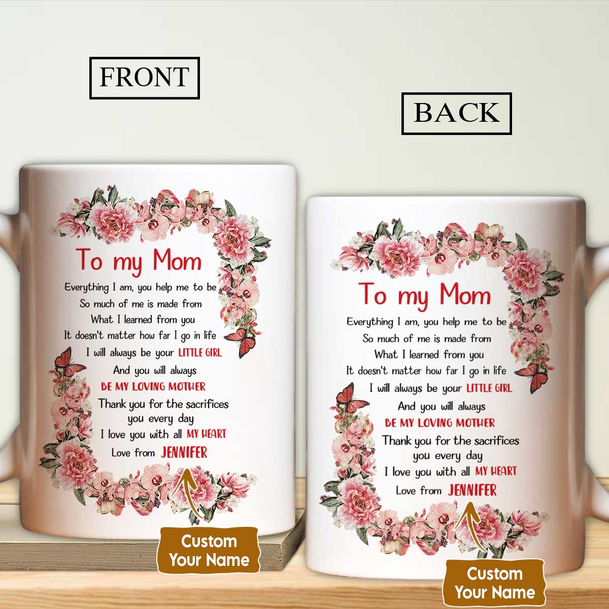 Gift For Mom Personalized Mug- Daughter to mom, Music sheet, Beautiful butterfly Mug- Custom Gift For Mother's Day, Presents for Mom-Loving mother Mug