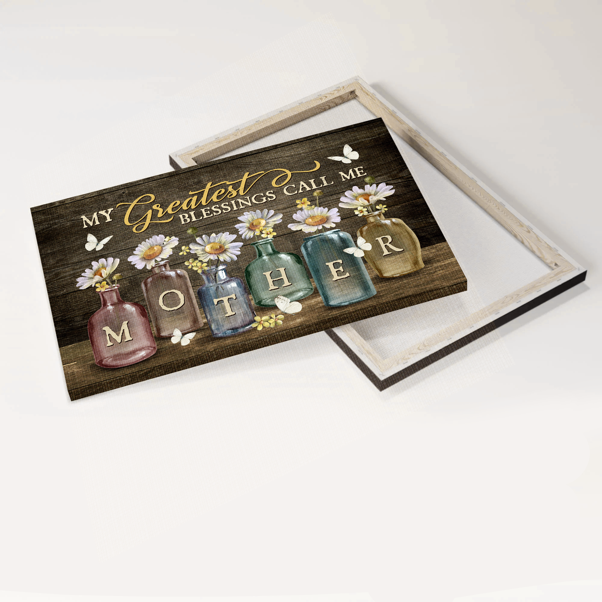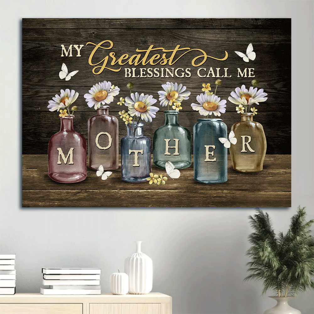 Gift For Mother - Family Landscape Canvas - Lovely daisy vase, White butterfly, Happy family Landscape Canvas - My greatest blessings call me Mother Landscape Canvas