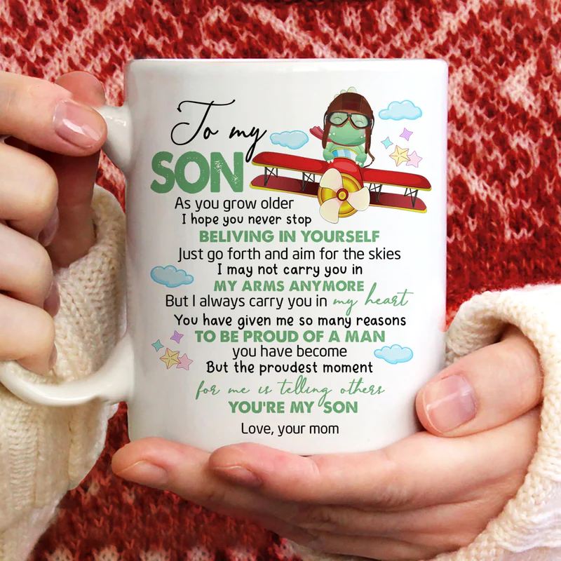 Son Gift Ideas From Mom And Dad: This sharp-looking, amazing ceramic designer mug with Inspirational Words Quotes is a lovely gift for anyone in your life. A Gift for your Son from Dad, Mom or another with Coffee Cup.