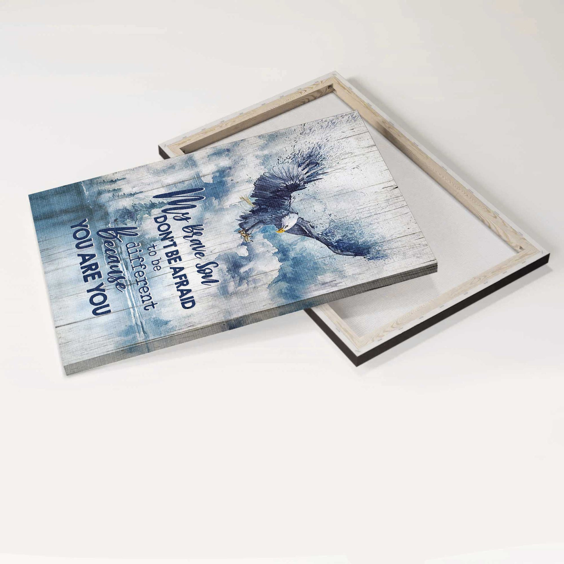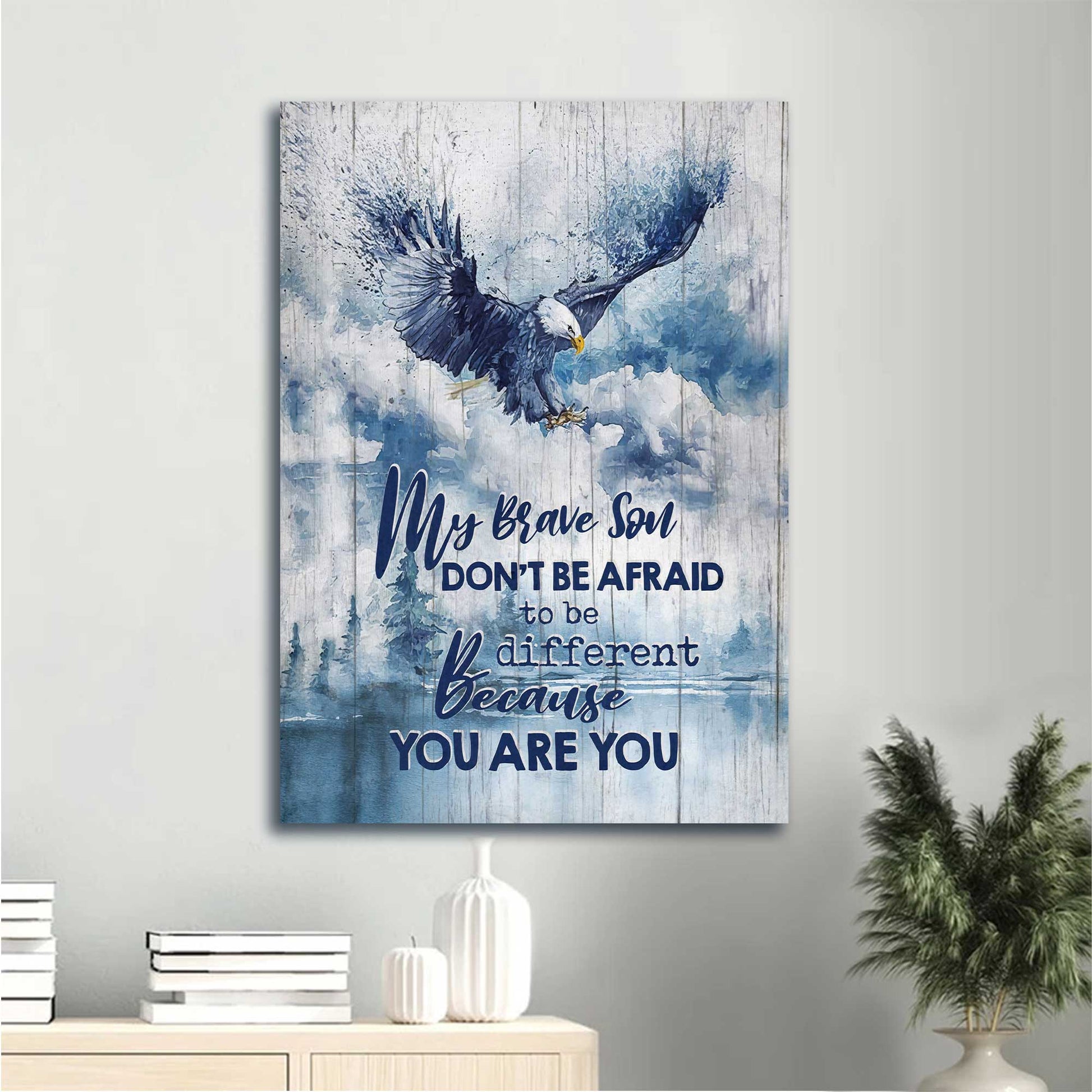 Gift For Son Portrait Canvas - To My Son, Blue Sky, Bald Eagle Drawing, Family Canvas - Gift From Mom Dad, Birthday Gift - Don't Be Afraid To Be Different