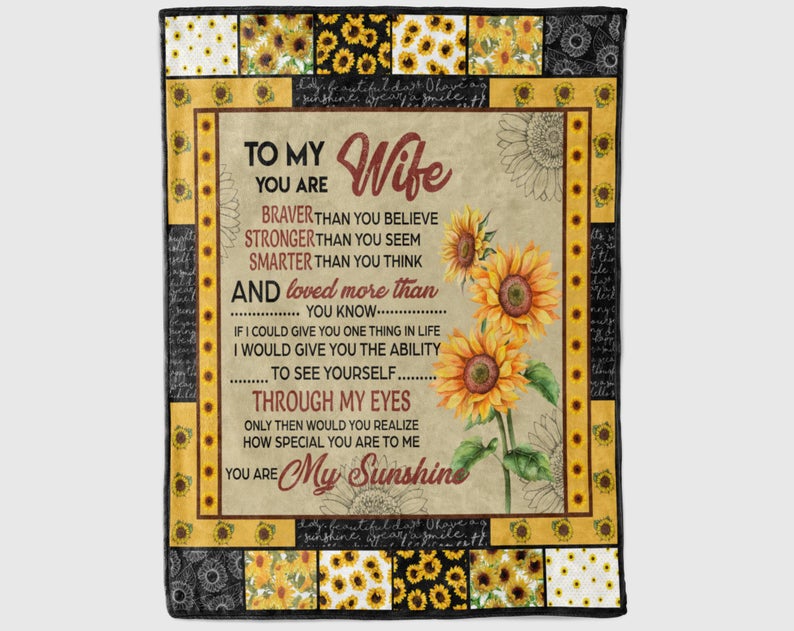 Gift For Wife Blanket - You A My Sunshine I Like Sunflower, To My Wife Blanket - Gift From Husband Romantic Anniversary, Valentines, Mother's Day, Christmas, Birthday Blanket