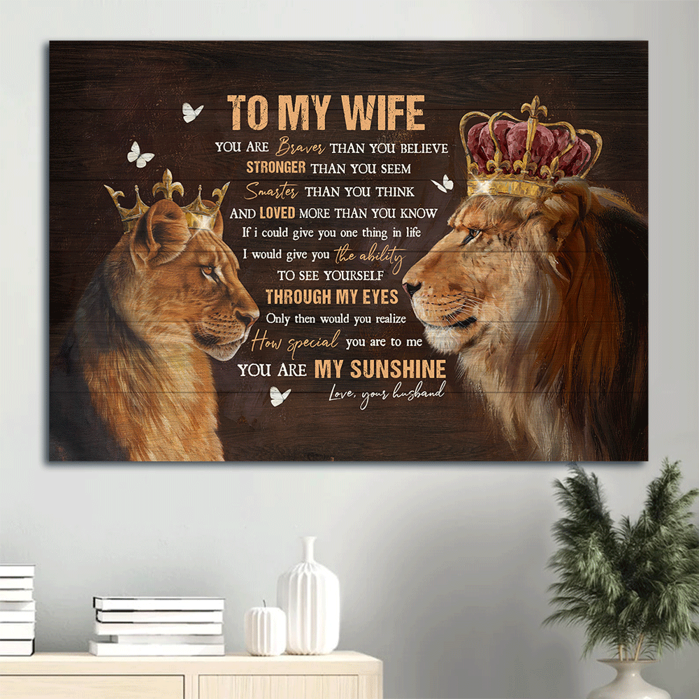 Gift For Wife Landscape Canvas - To My Wife, Lion King, Lion Queen, Golden Crown Canvas - Valentine's Day Gift For Couple, Spouse, Lover - You Are My Sunshine - Family Canvas