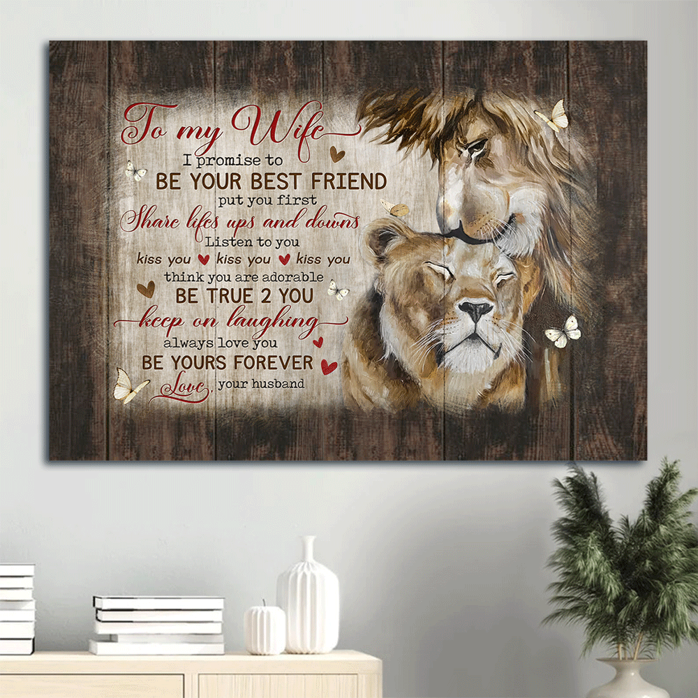 Gift For Wife Landscape Canvas - To my wife, Sweet painting, Lion drawing Canvas - Valentine's Day Gift For Couple, Spouse, Lover - I promise to be your best friend