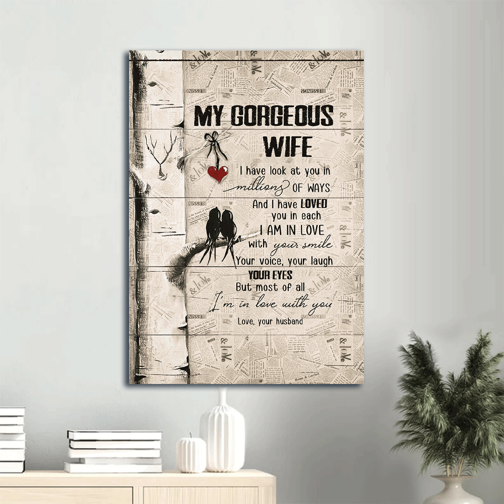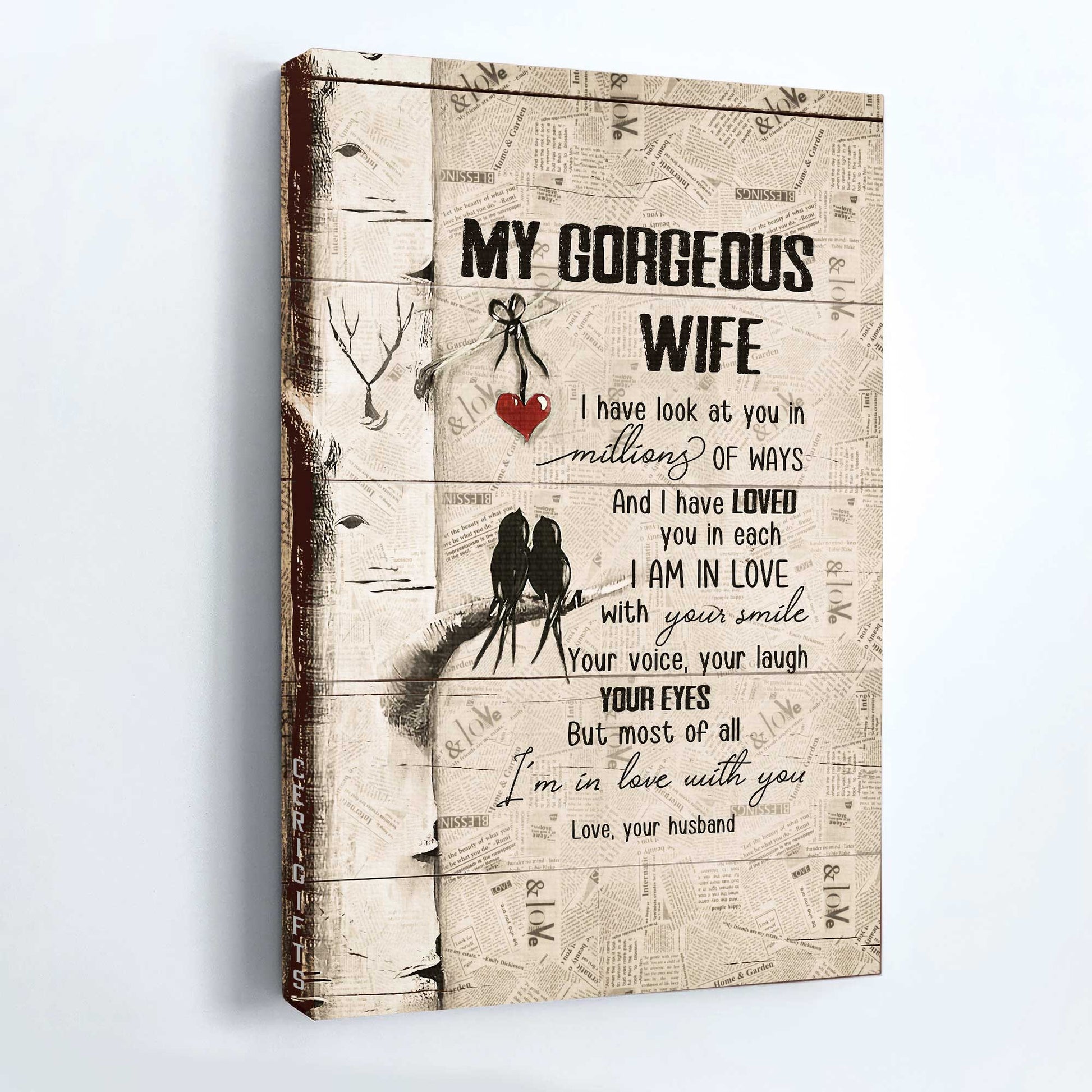 In our lives, the other half of the heart is always a sacred thing, they go with us through all the ups and downs and accompany us to the end of the road. Let the lyrics My gorgeous wife of our Gift For Wife Portrait Canvas - To My Wife, Black Bird, Paper Background, Family Canvas - Valentine's Day Gift For Couple, Spouse, Lover - I'm In Love With You Canvas Prints, Wall Art express your feeling through this wall art. Furthermore, a bird couple of Gift For Wife Portrait Canvas - To My Wife, Black Bird, Paper Background, Family Canvas - Valentine's Day Gift For Couple, Spouse, Lover - I'm In Love With You Canvas Prints, Wall Art will bring a sweet feeling for you and your wife. This Gift For Wife Portrait Canvas - To My Wife, Black Bird, Paper Background, Family Canvas - Valentine's Day Gift For Couple, Spouse, Lover - I'm In Love With You Canvas Prints, Wall Art suits any room in your house from kitchen, bedroom, bathroom to living room.