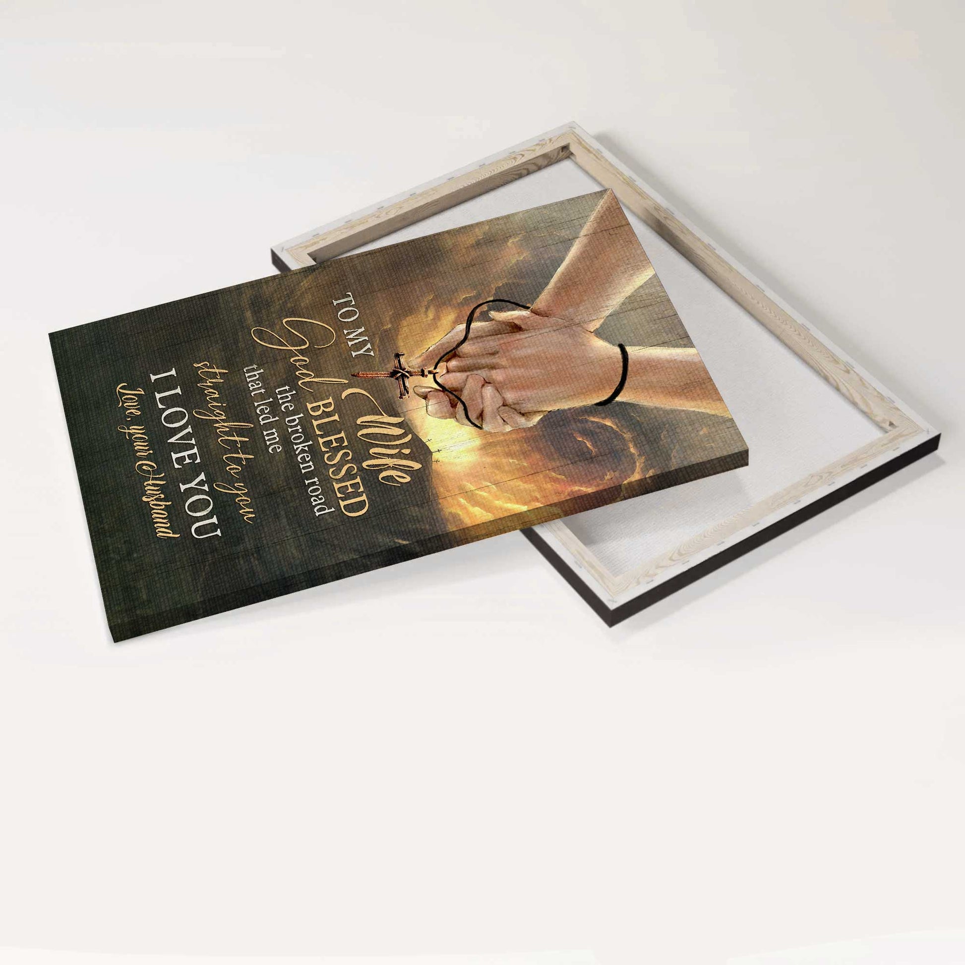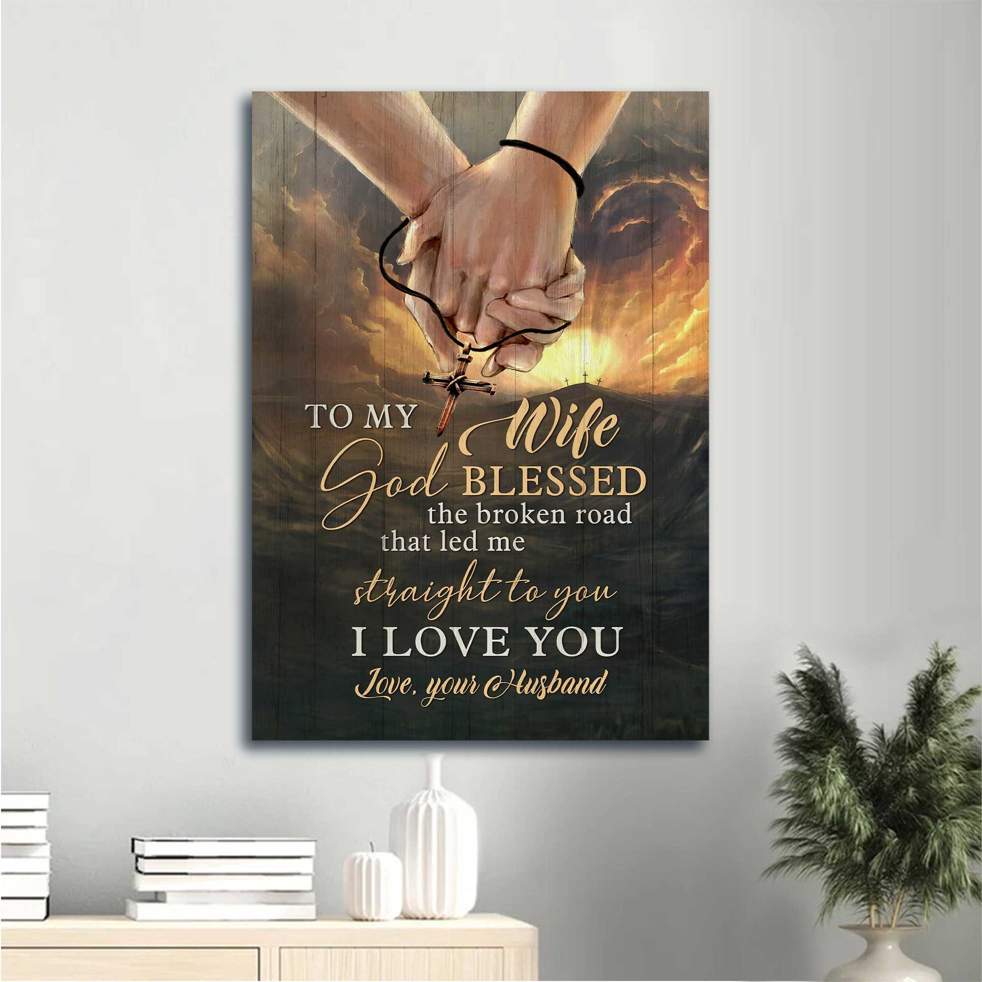 Gift For Wife Portrait Canvas - To My Wife, Hand In Hand, Cross Symbol Canvas - Valentine's Day Gift For Couple, Spouse, Lover - I Love You - Family Canvas