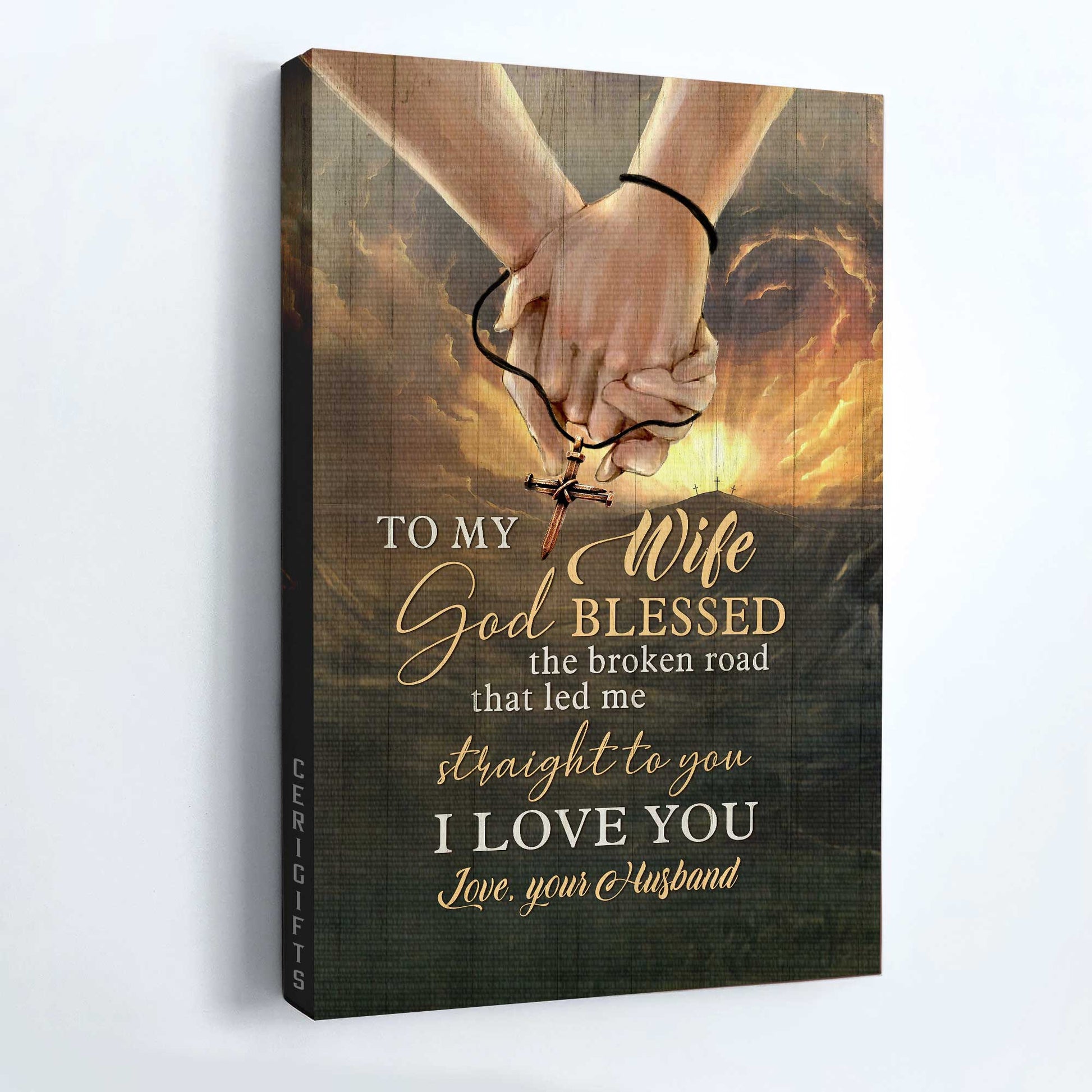 Gift For Wife Portrait Canvas - To My Wife, Hand In Hand, Cross Symbol Canvas - Valentine's Day Gift For Couple, Spouse, Lover - I Love You - Family Canvas Prints, Wall Art is a beautiful canvas that may be put in any area of the house, such as the living room, bedroom, kitchen and even the outdoor.