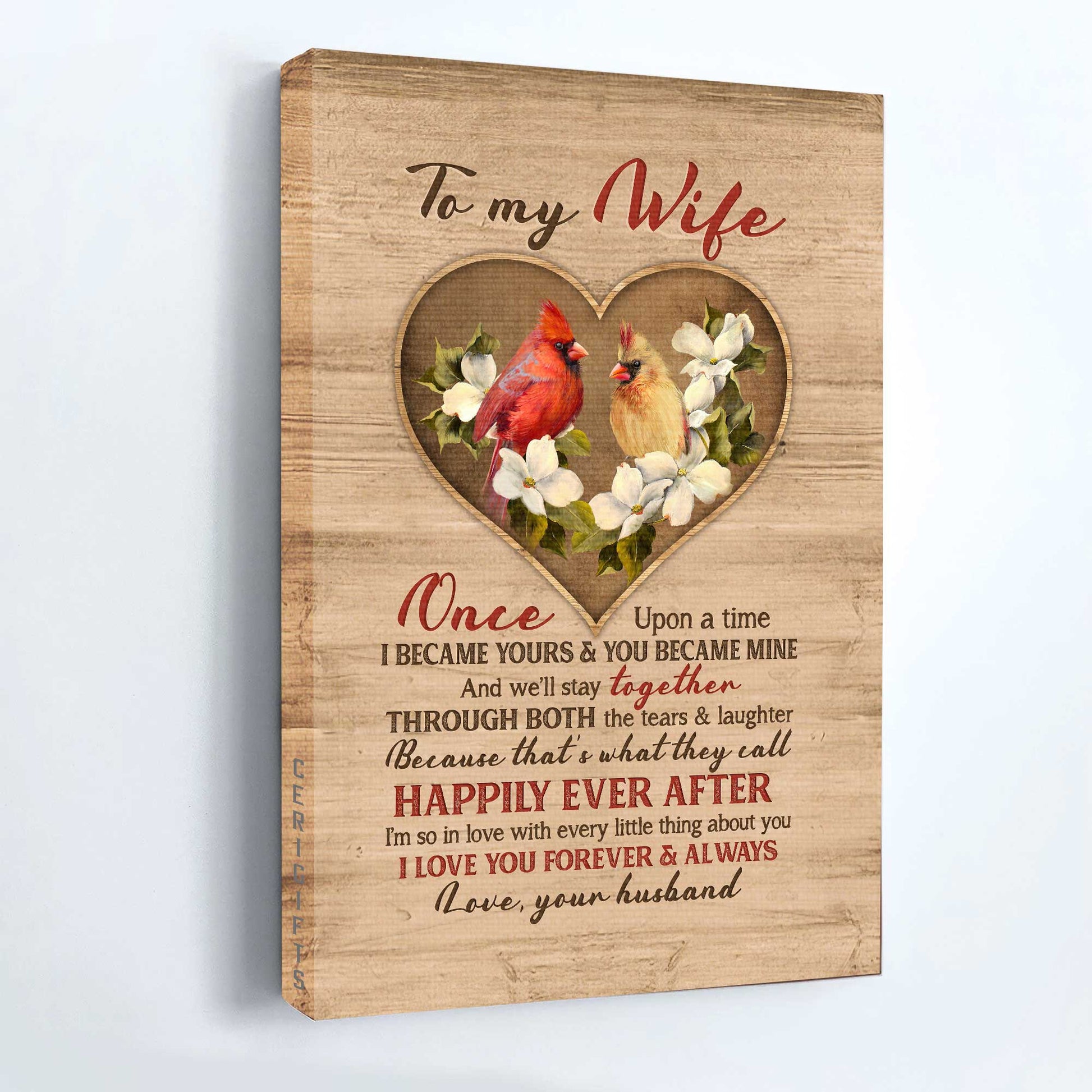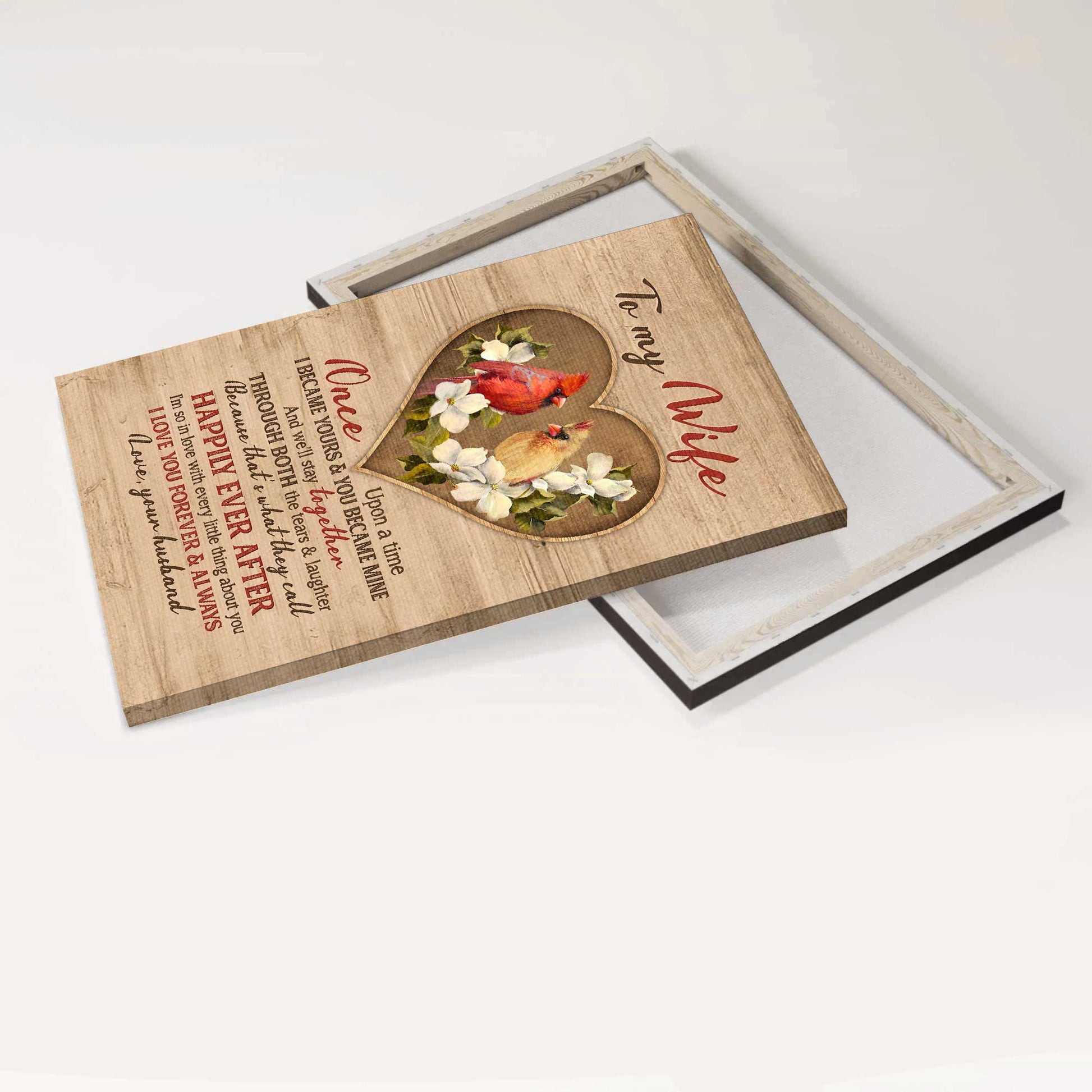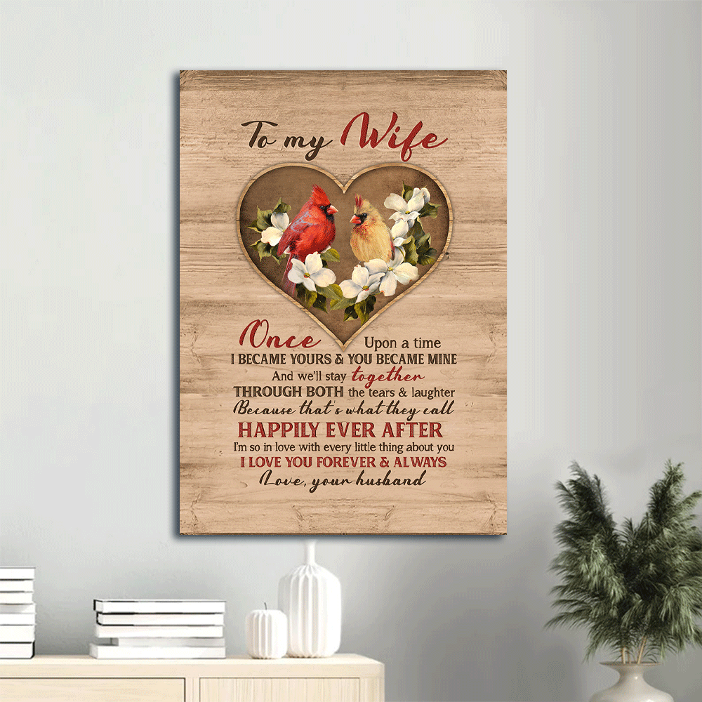 Gift For Wife Portrait Canvas - To My Wife, Heart Shape, Cardinal Painting Canvas - Valentine's Day Gift For Couple, Spouse, Lover - I Love You Forever And Always - Family Canvas