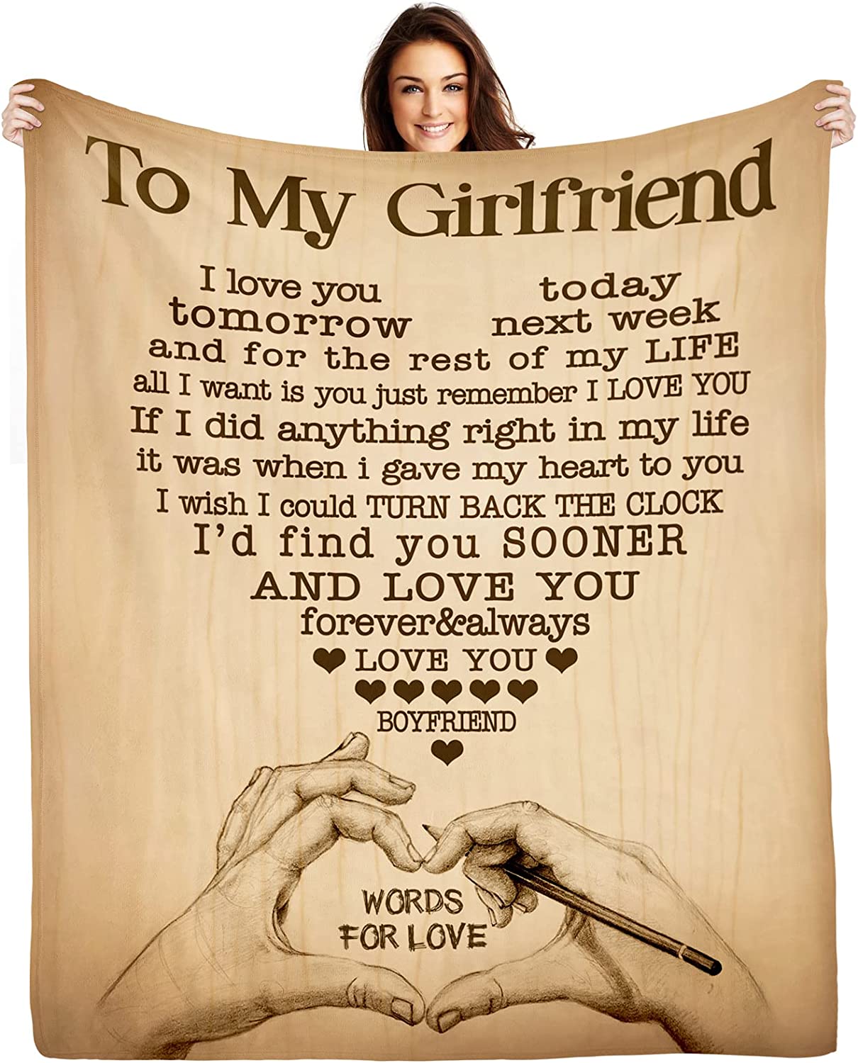 Gifts For Girlfriend Blankets, Gift From Boyfriend Blanket For Christmas Wedding Anniversary Birthday Valentine's Day - Heart Words For Love