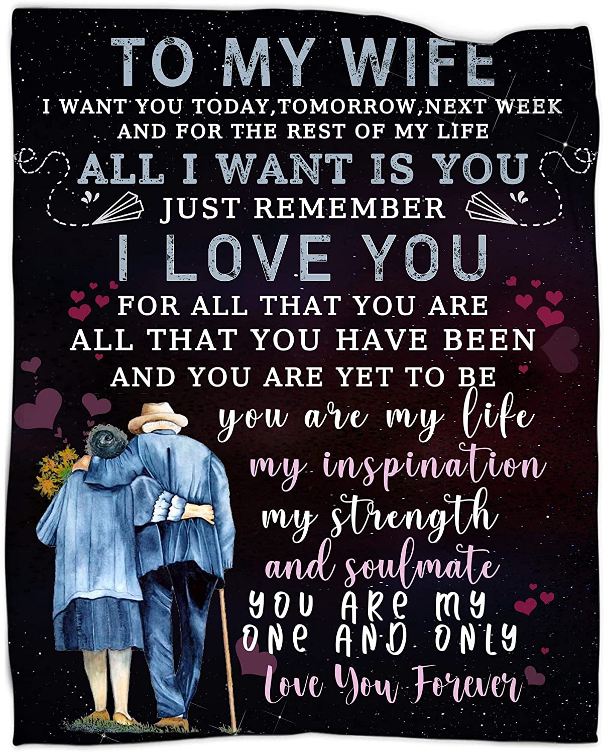 Gifts For Her Wife Blankets, Gift From Husband Blanket For Valentine's Day Christmas Wedding Anniversary Birthday Day - To My Wife All I Want Is You