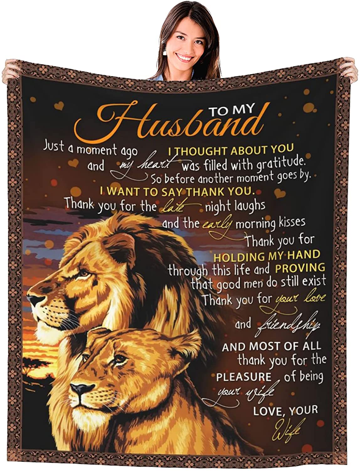 Gifts For Husband Blanket - Lion Couple, To My Husband Blanket - Gift From Wife, Anniversary, Wedding, Valentines, Mother's Day, Christmas, Birthday Blankets For Home Bed Sofa Decor