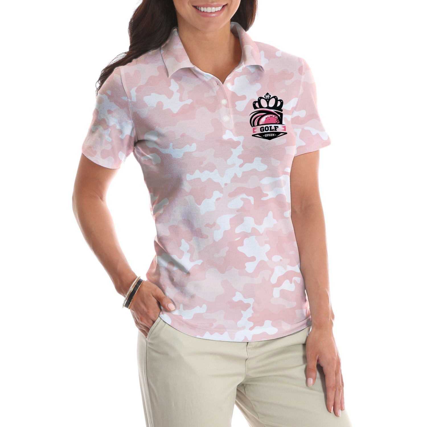 Girl Play Golf Women Polo Shirt, Stop Leering At My Putt Women Polo Shirt, Pink Pattern Polo Shirt For Female - Perfect Gift For Women, Ladies