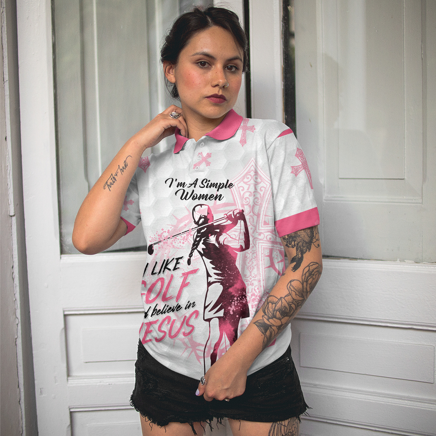 Golf and Jesus Women Polo Shirt, I'm A Simple Women I Like Golf And Believe In Jesus Short Sleeve Women Polo Shirt, Best Golf Shirt For Ladies