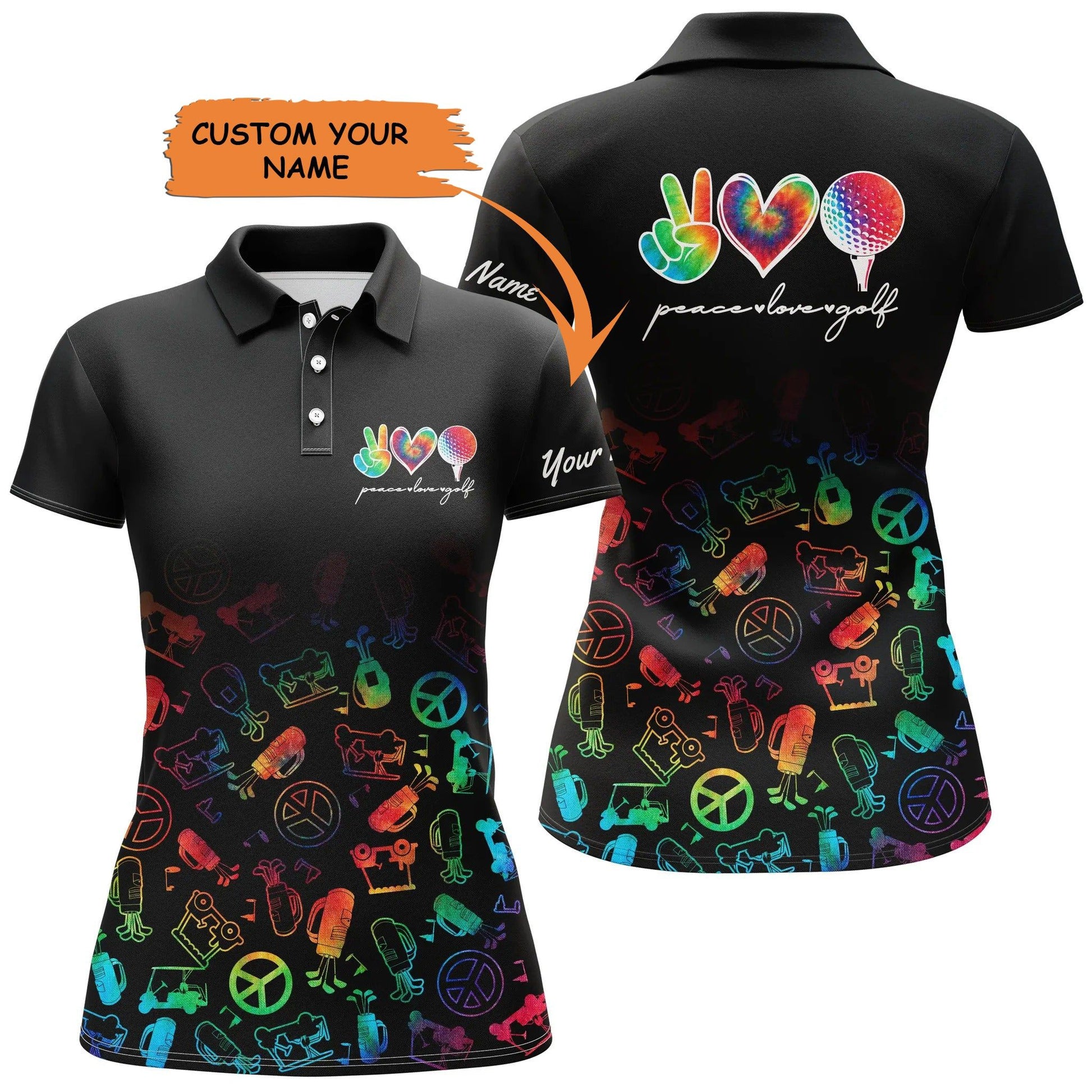 Golf Custom Name Women Polo Shirt, Watercolor Peace Love Golf Golf Icon Personalized Women Polo Shirt - Perfect Gift For Ladies, Golf Lovers, Golfers