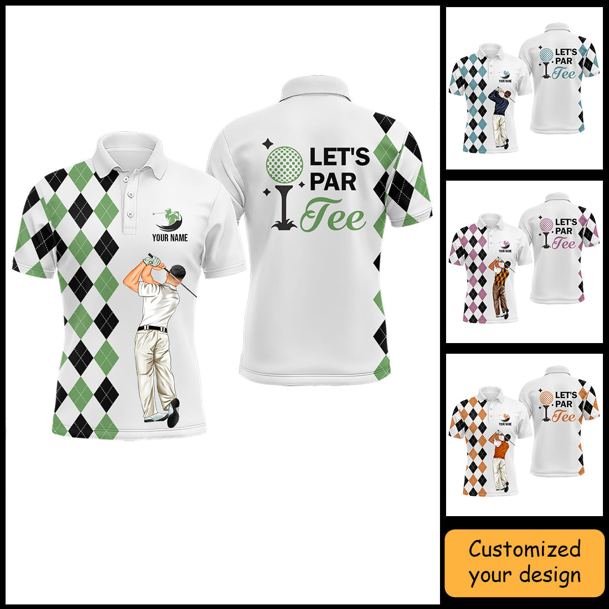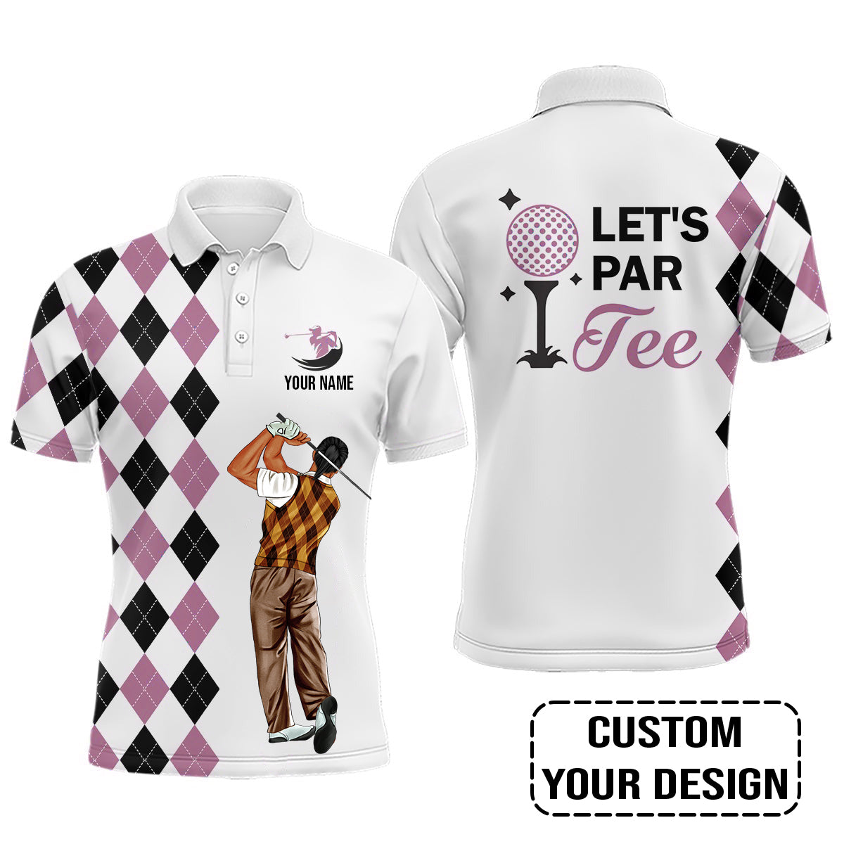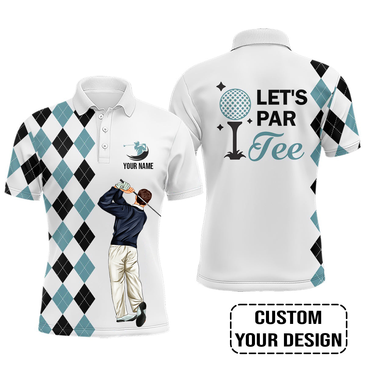 Golf Custom Polo Shirt, Argyle Pattern Golf, Let's par tee Personalized Golf Polo Shirt