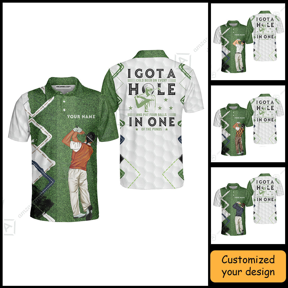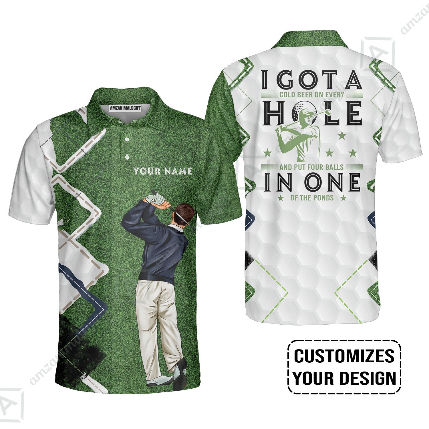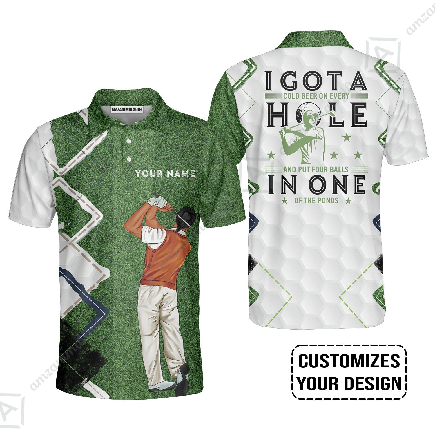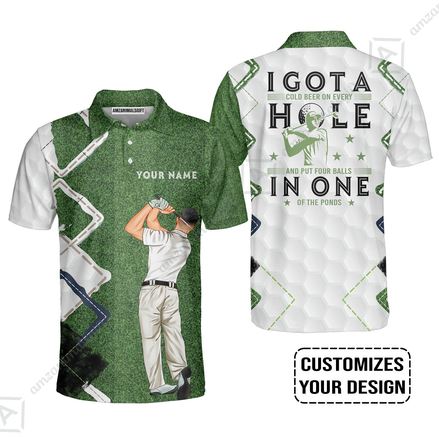 Golf Custom Polo Shirt, Green Argyle Golf Men Polo Shirt, I Got A Cold Beer On Every Hole In One Golf Personalized Polo Shirts