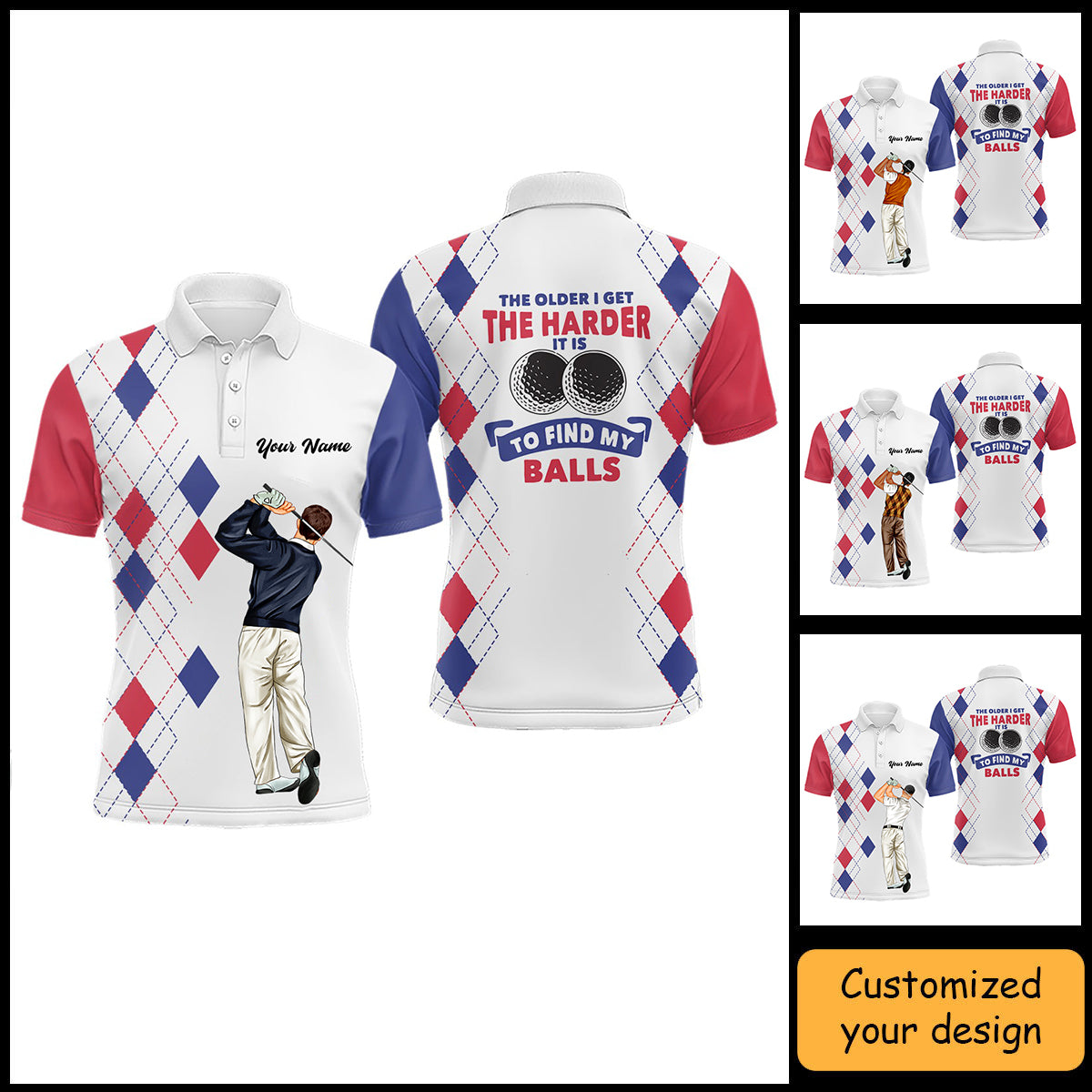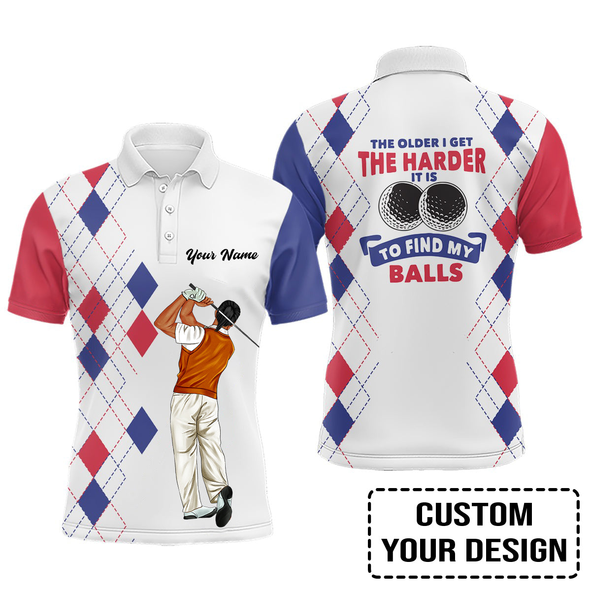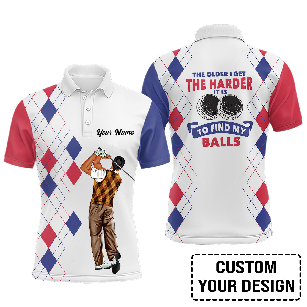Golf Custom Polo Shirt, The Older I Get The Harder It Is Argyle Pattern Personalized Golf Polo Shirt