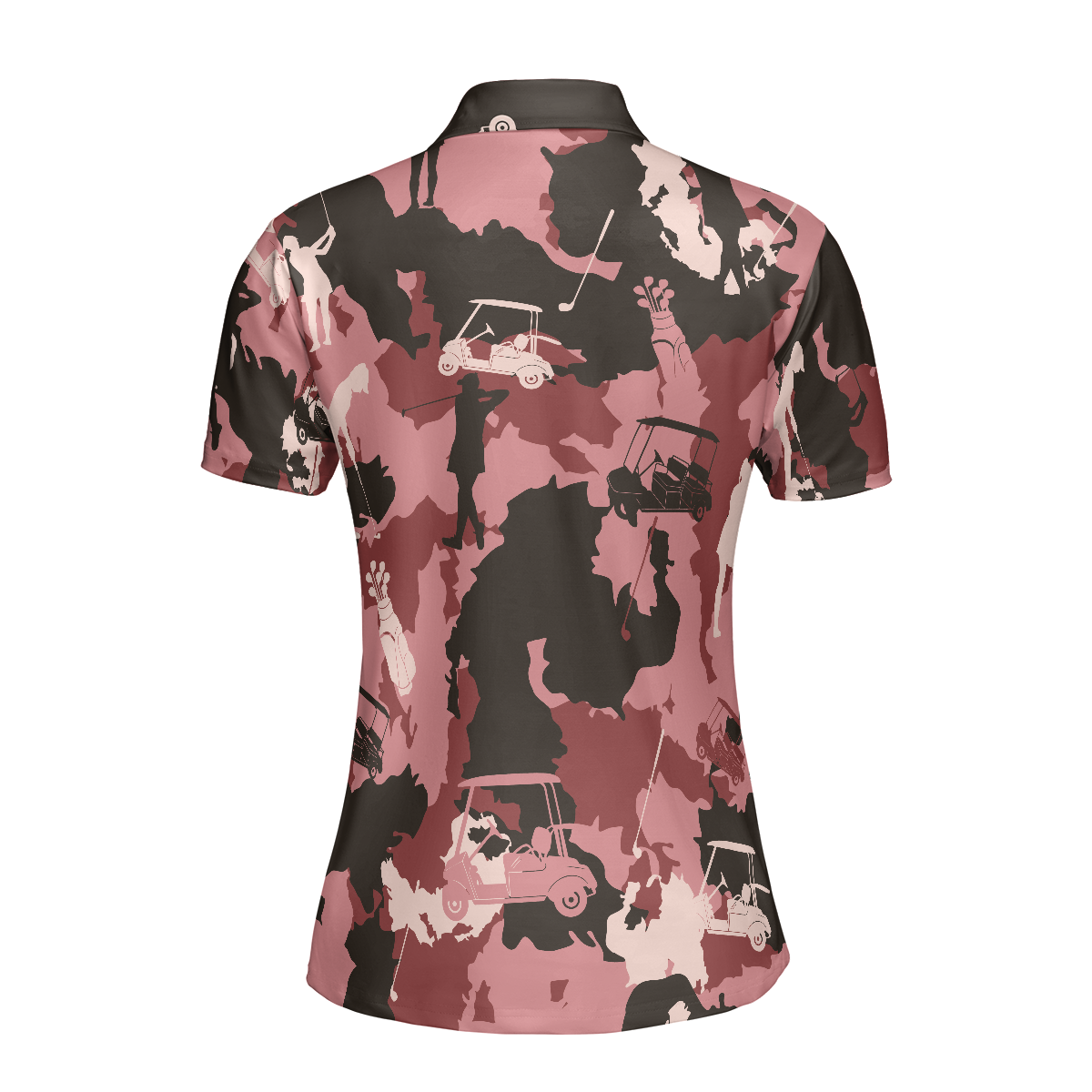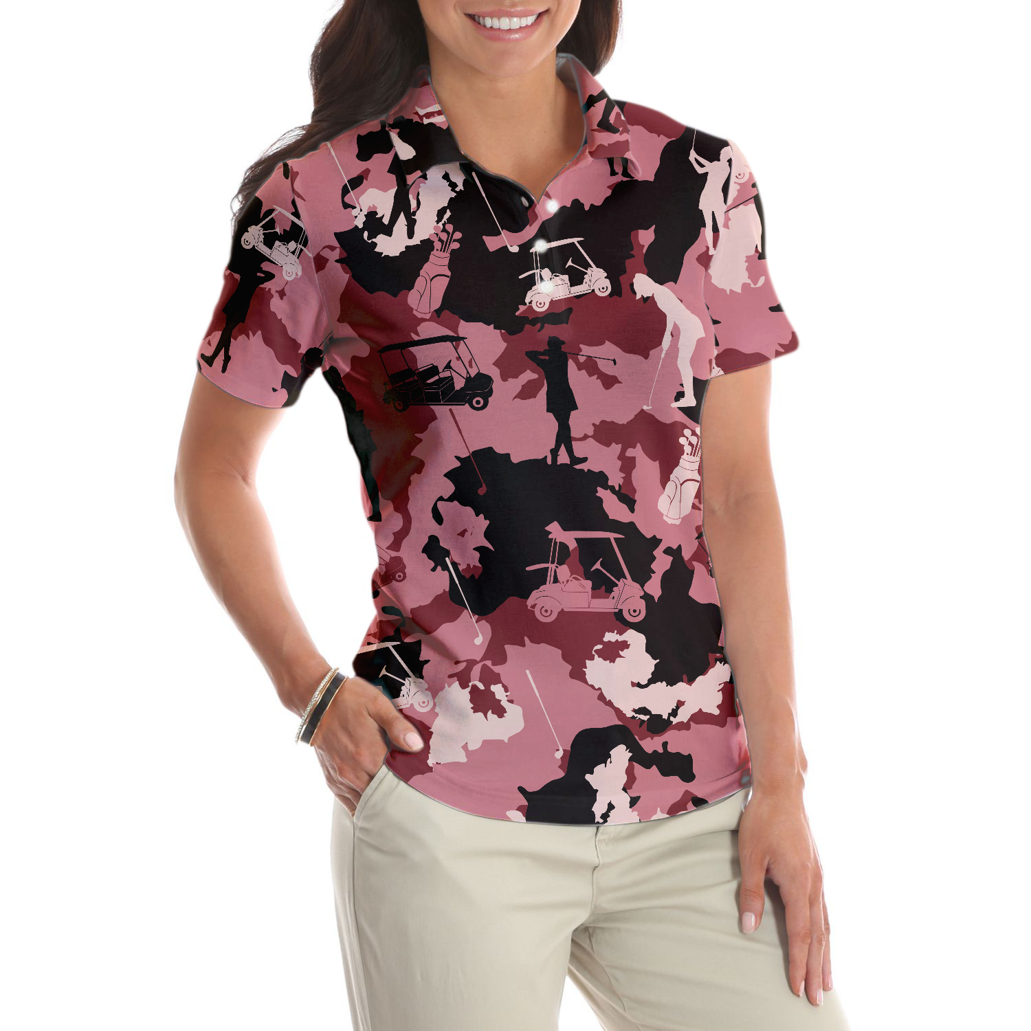 Golf Girl Camouflage Short Sleeve Women Polo Shirt, Pink Camo Golf Shirt For Ladies, Cool Golf Gift For Women, Best Gift For Women Golfers