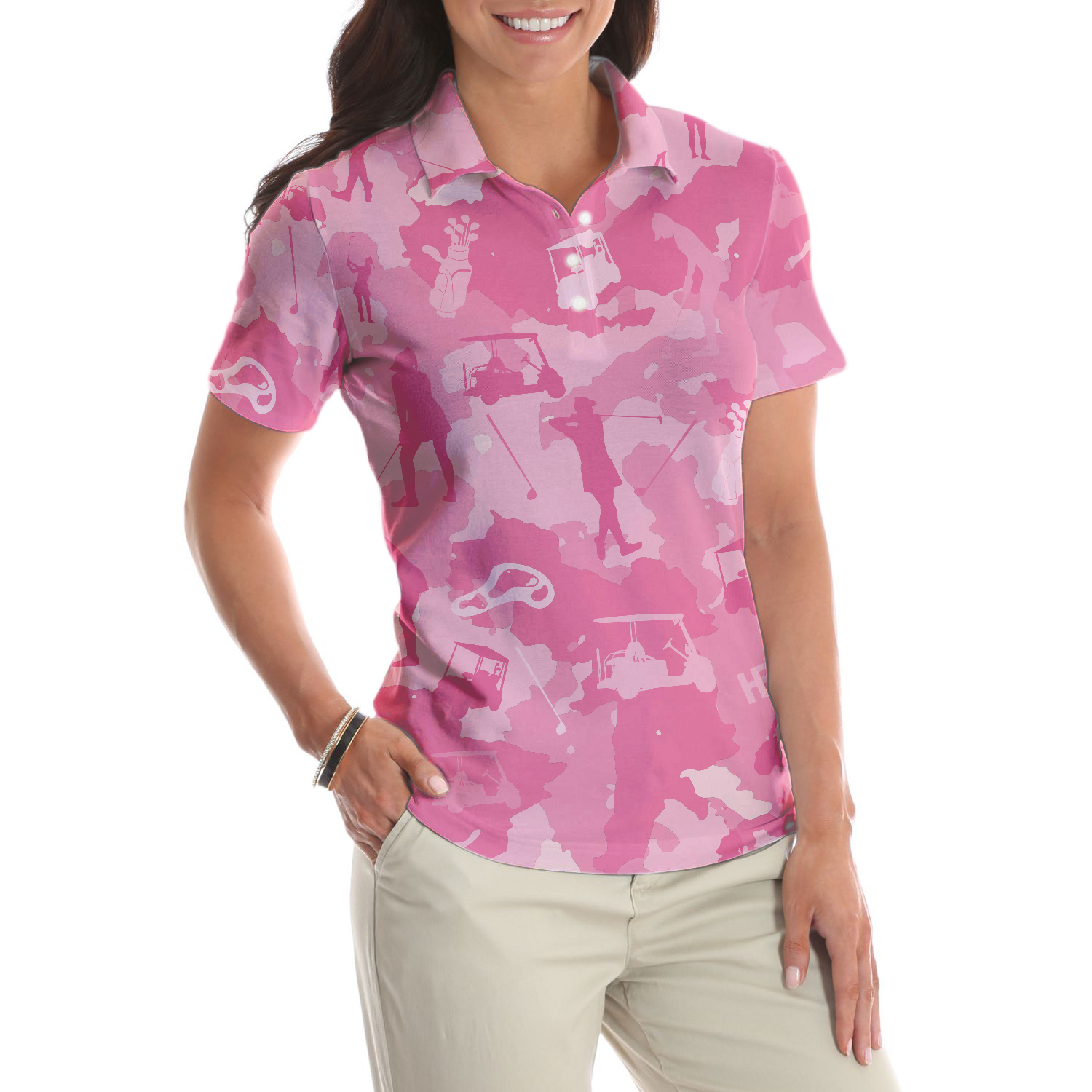 Golf Girl Camouflage V2 Short Sleeve Women Polo Shirt, Pink Camo Golf Shirt For Ladies, Cool Golf Gift For Women, Best Gift For Women Golfers