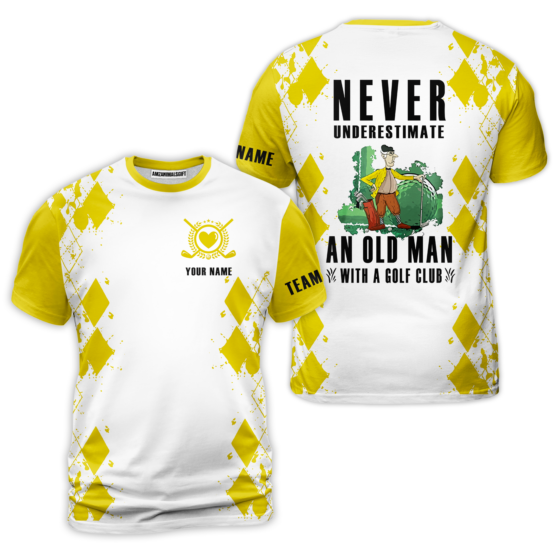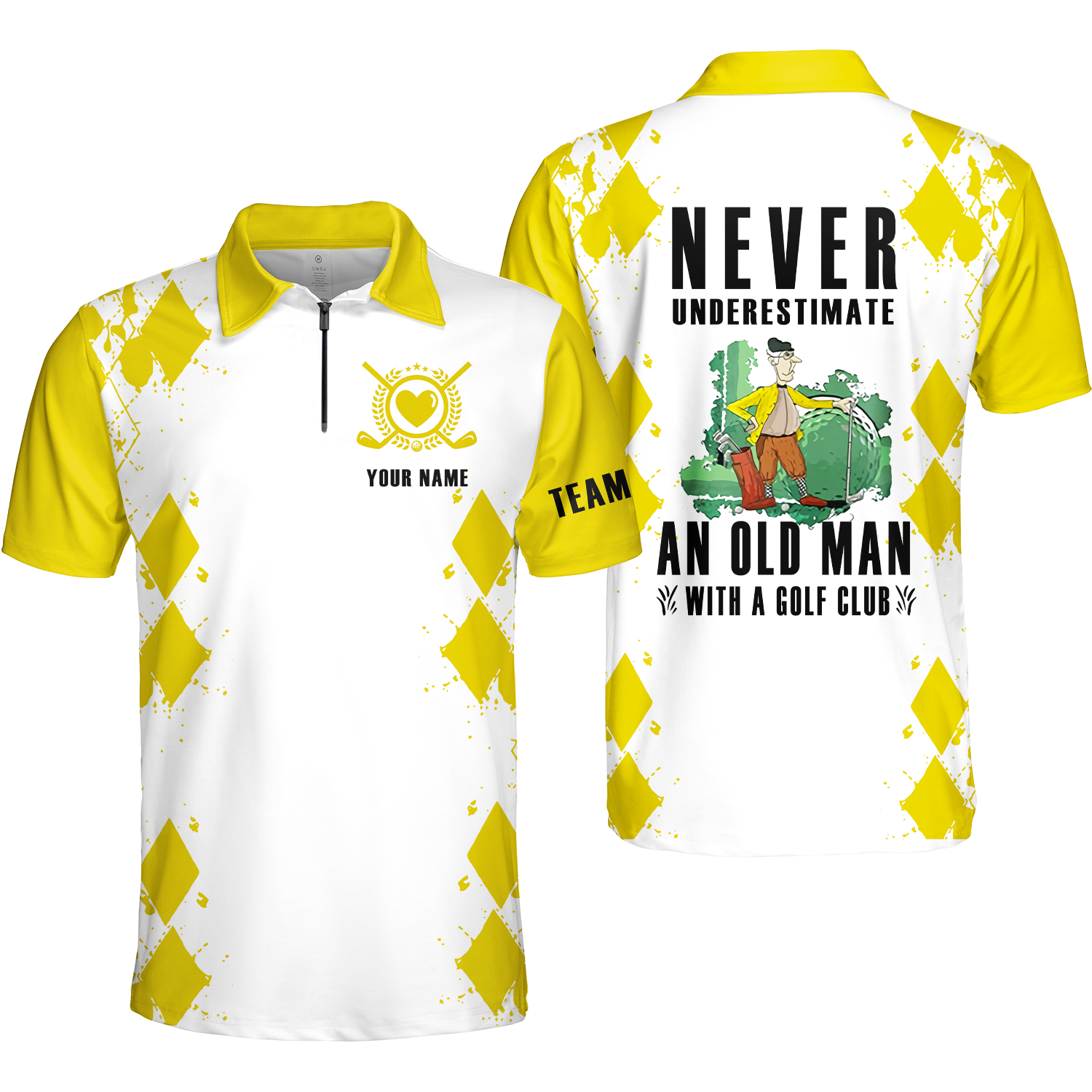 Golf Men Polo Shirt - Argyle Pattern Custom Name Apparel - Personalized Gift For Golf Lover, Team - Never Underestimate An Old Man With A Golf Club