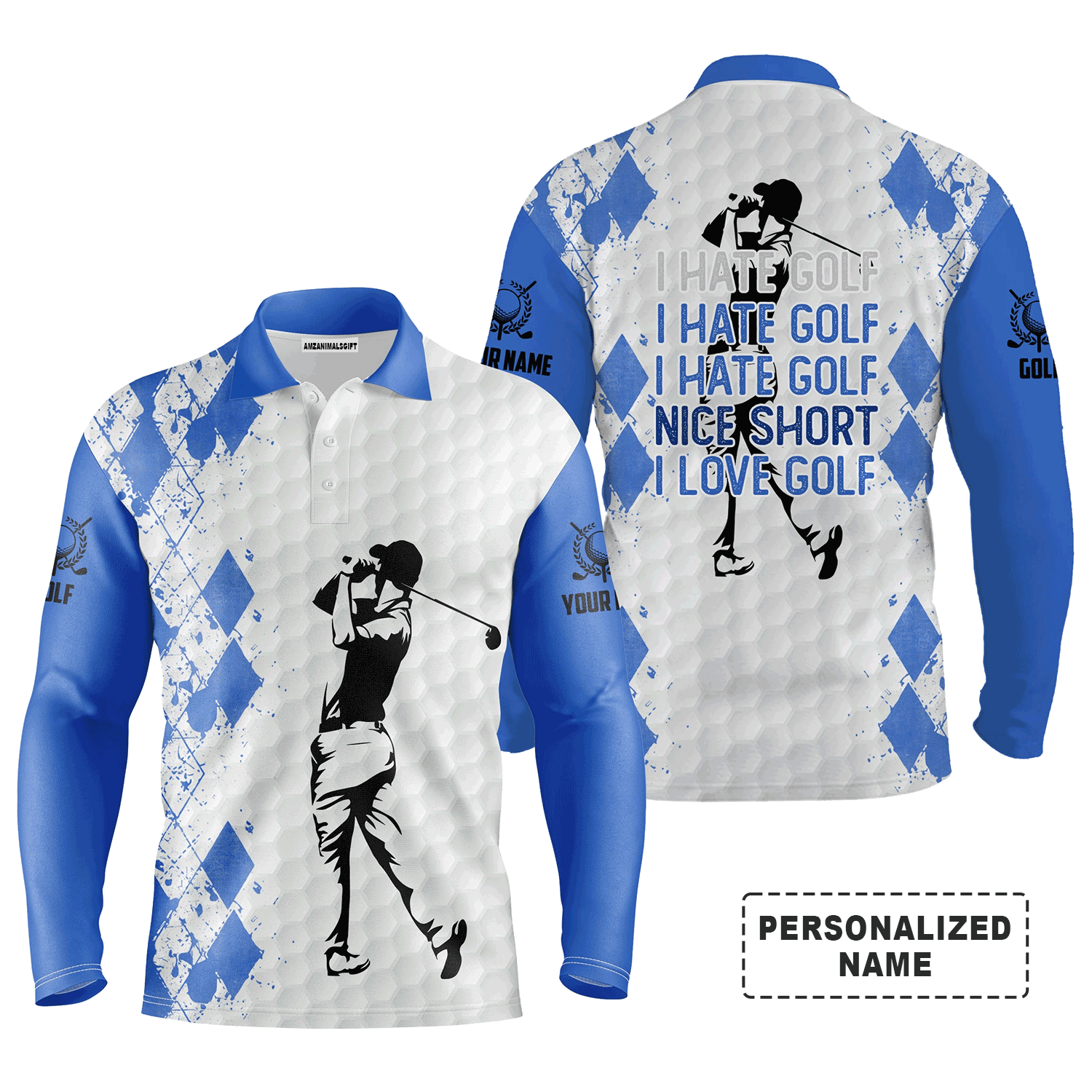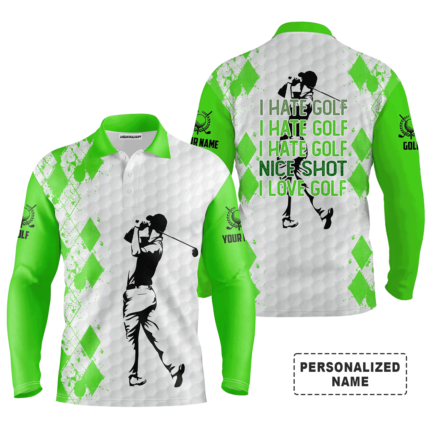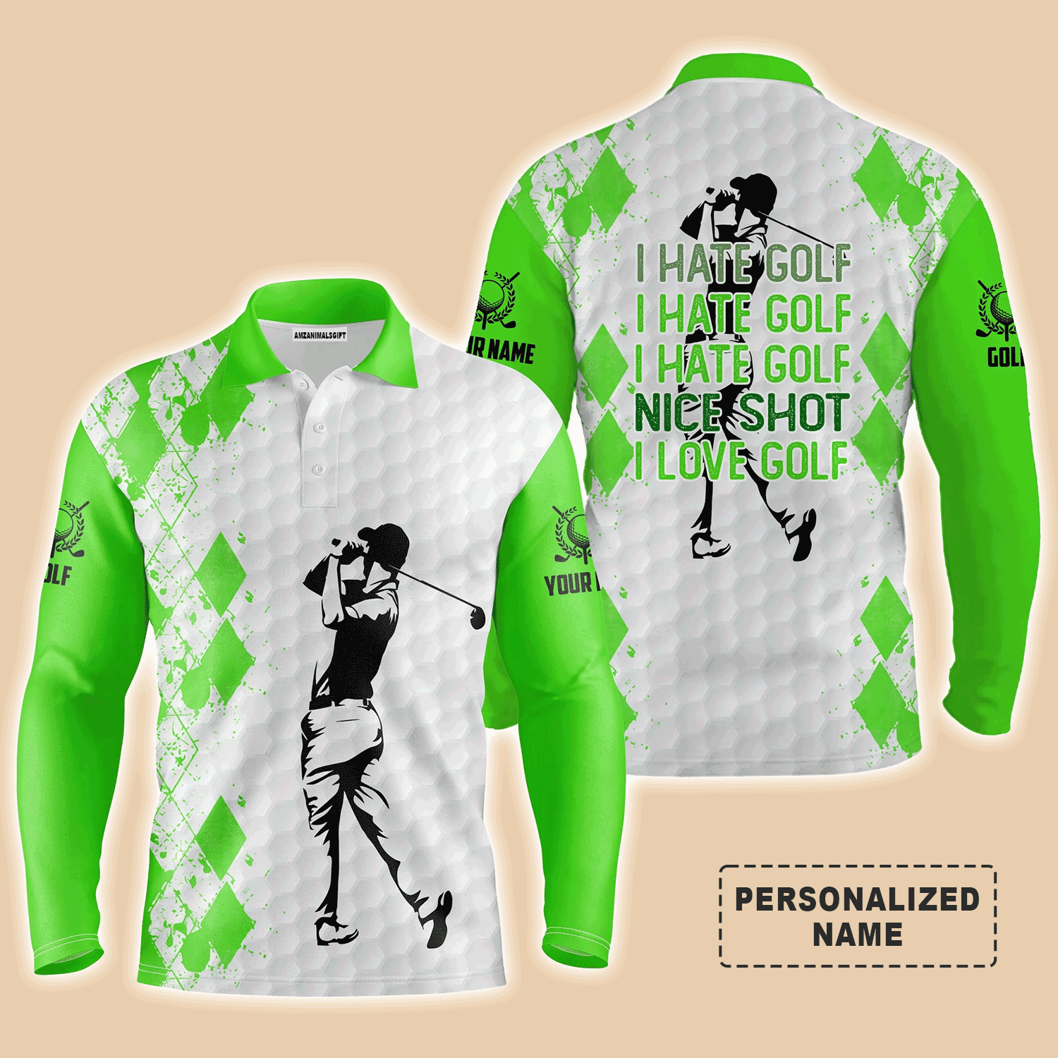 Golf Men Polo Shirt - Funny Custom Name Multicolor Apparel - I Hate Golf Nice Shot I Love Golf - Personalized Sport Gift For Golf Lover, Male, Husband