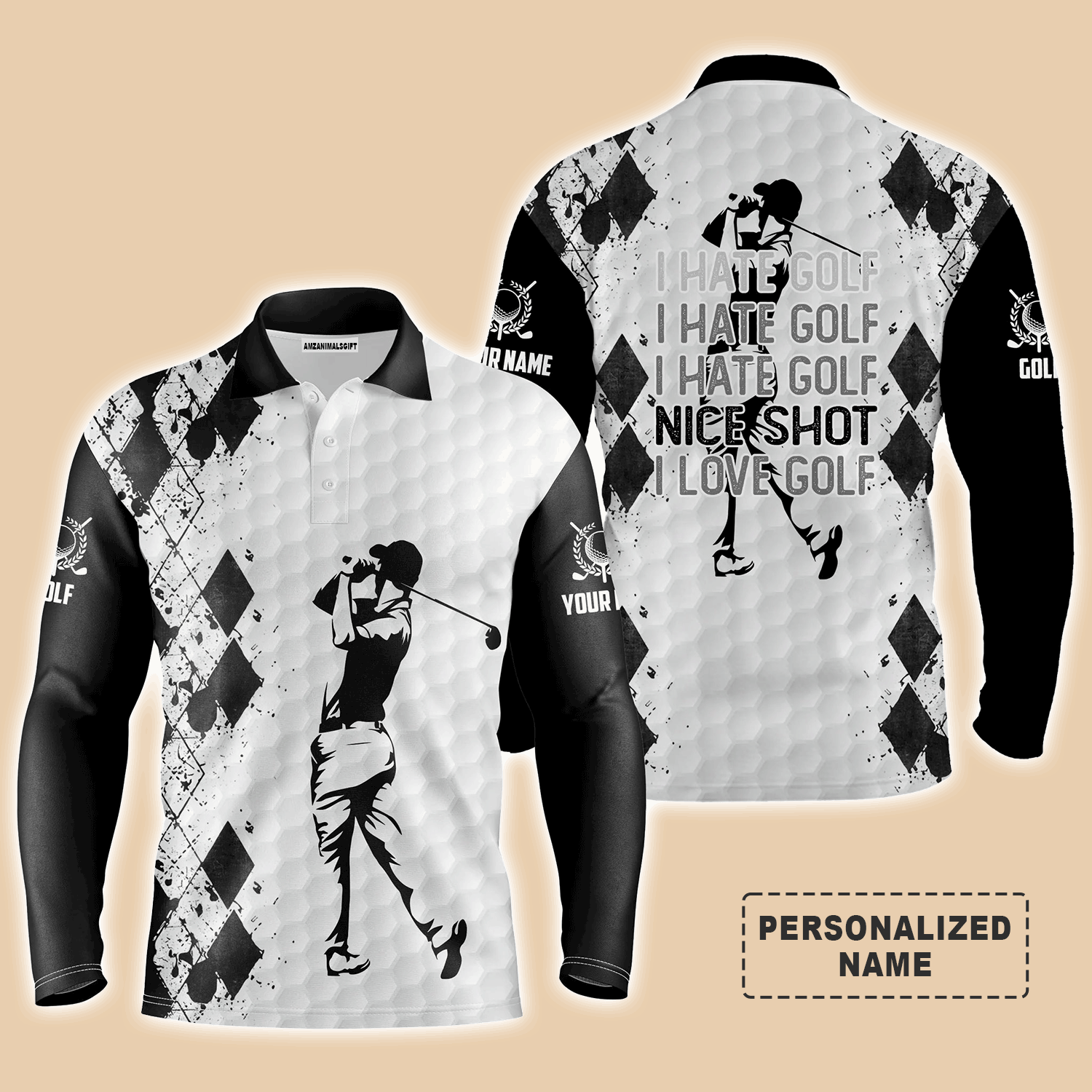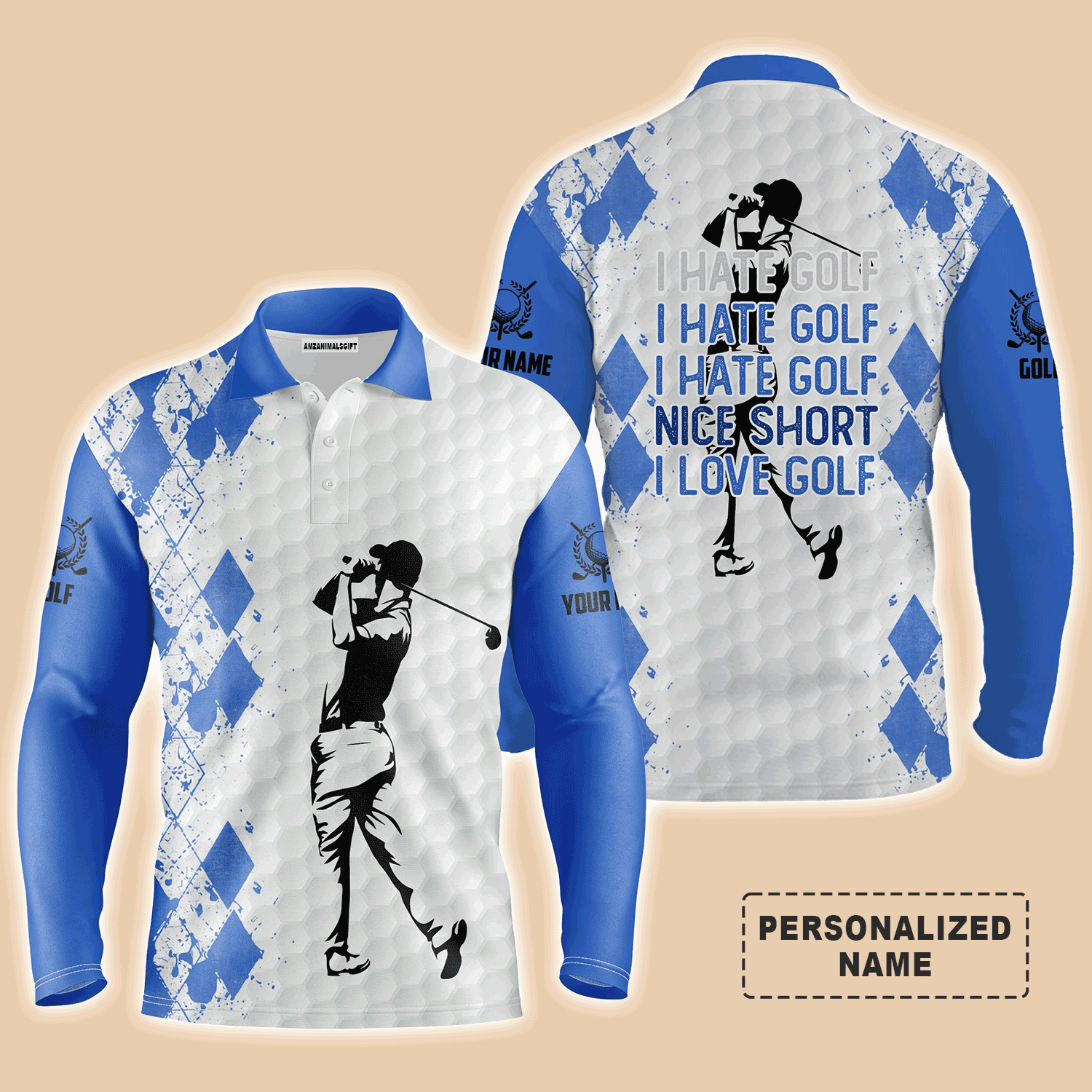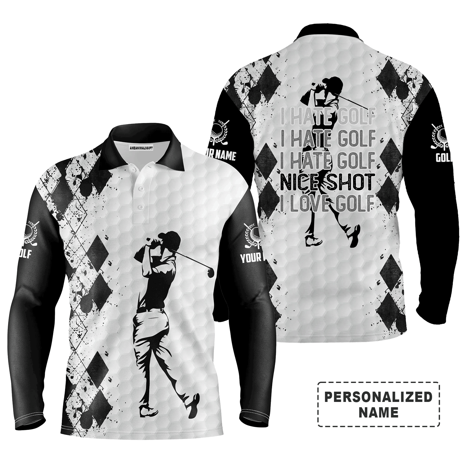 Golf Men Polo Shirt - Funny Custom Name Multicolor Apparel - I Hate Golf Nice Shot I Love Golf - Personalized Sport Gift For Golf Lover, Male, Husband